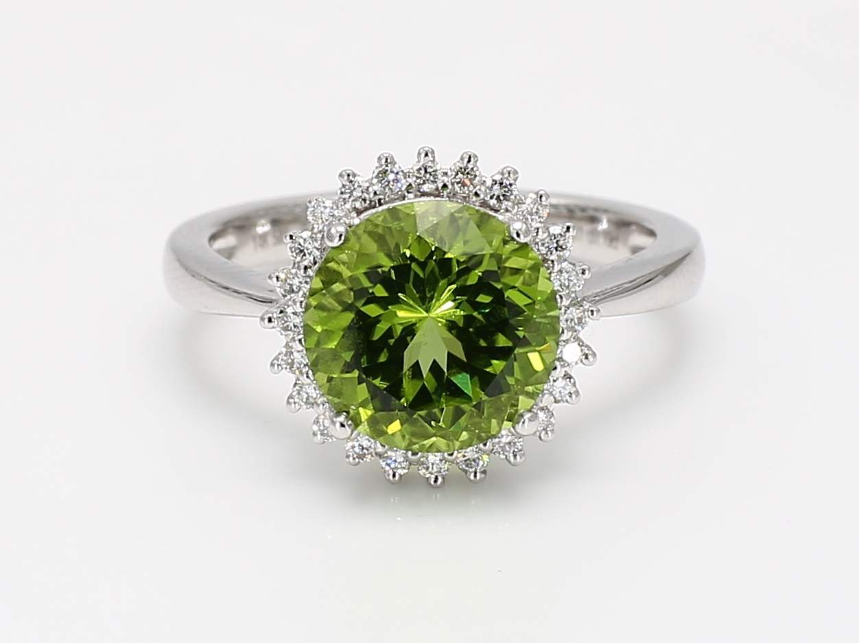 ROUND PERIDOT & ROUND DIAMOND 14KW RING