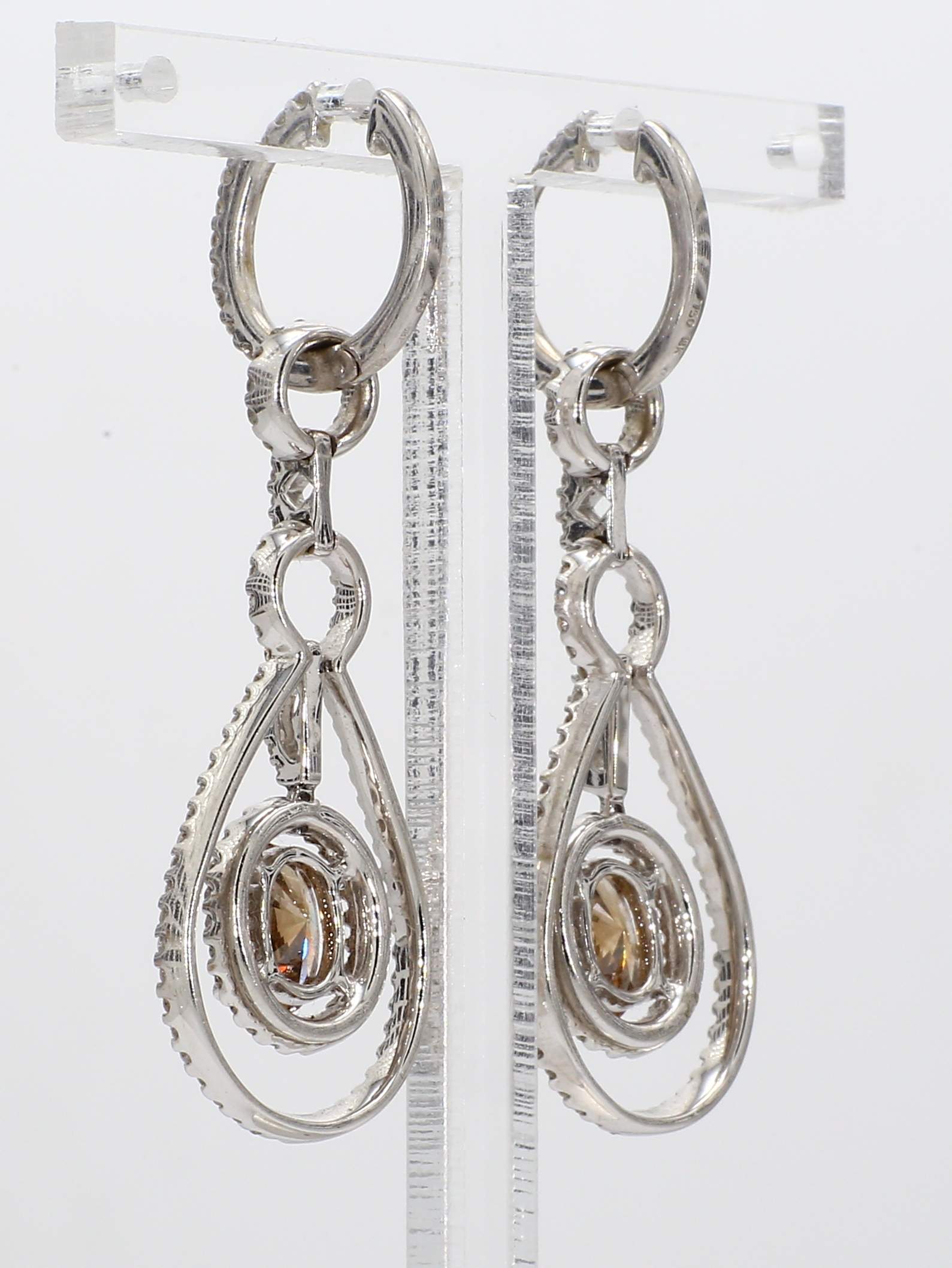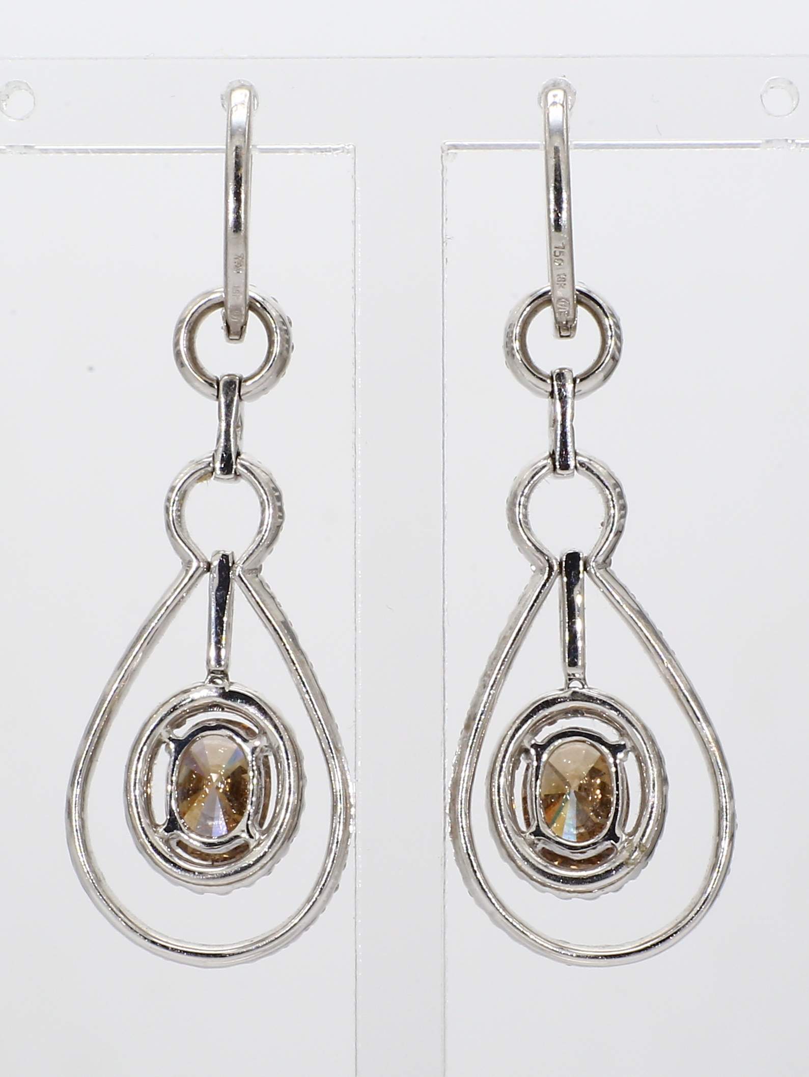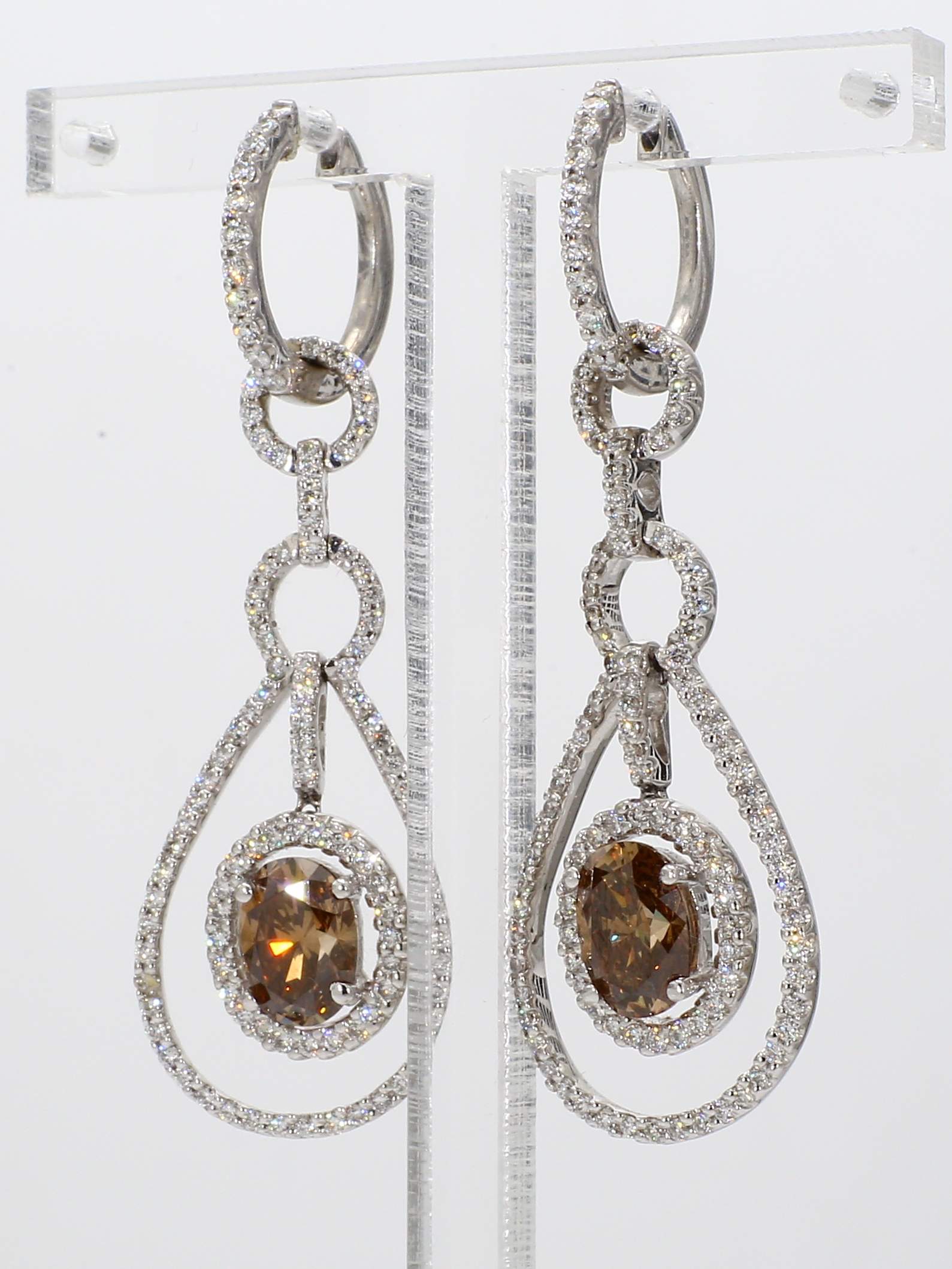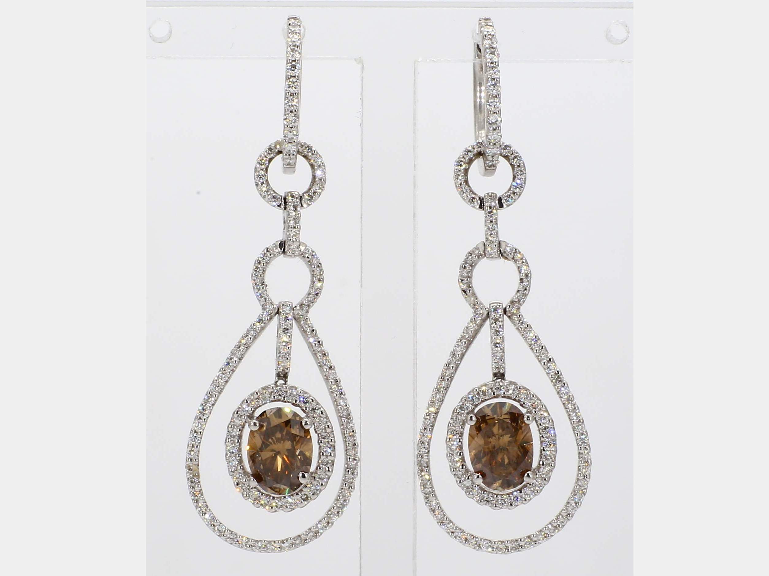 OVAL CHAMPAGNE DIAMOND & ROUND DIAMOND 18KW EARRINGS