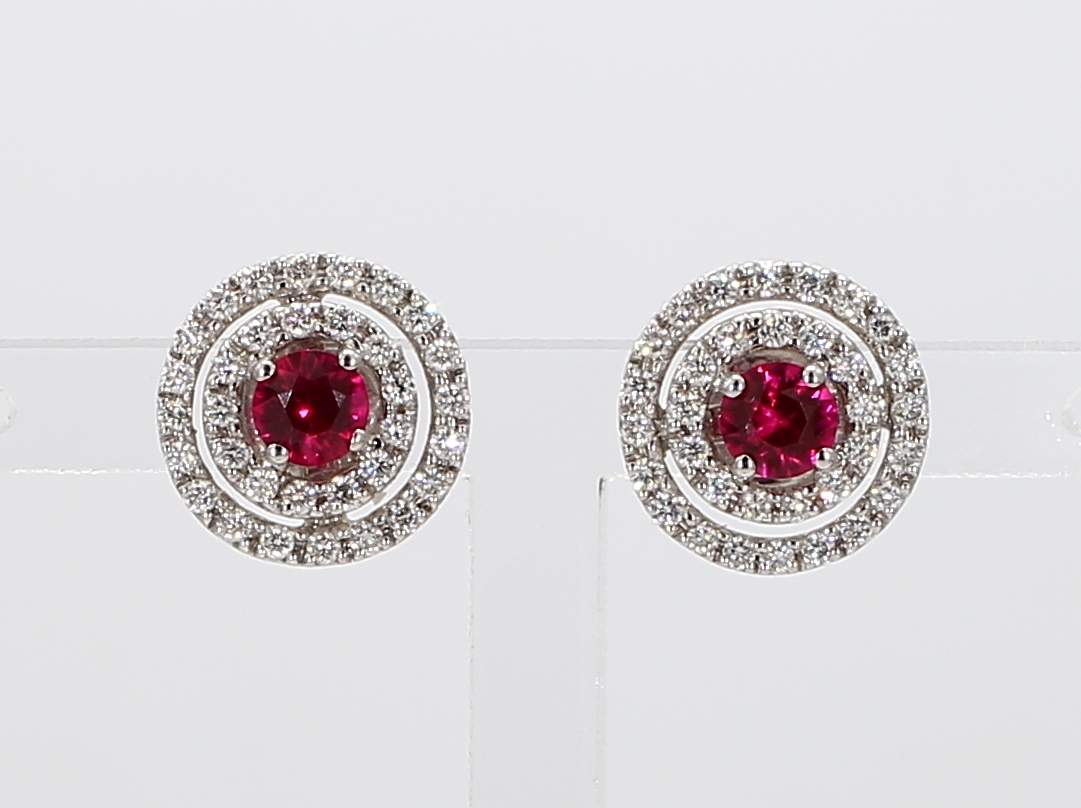 ROUND RUBY & ROUND DIAMOND 18KW EARRINGS