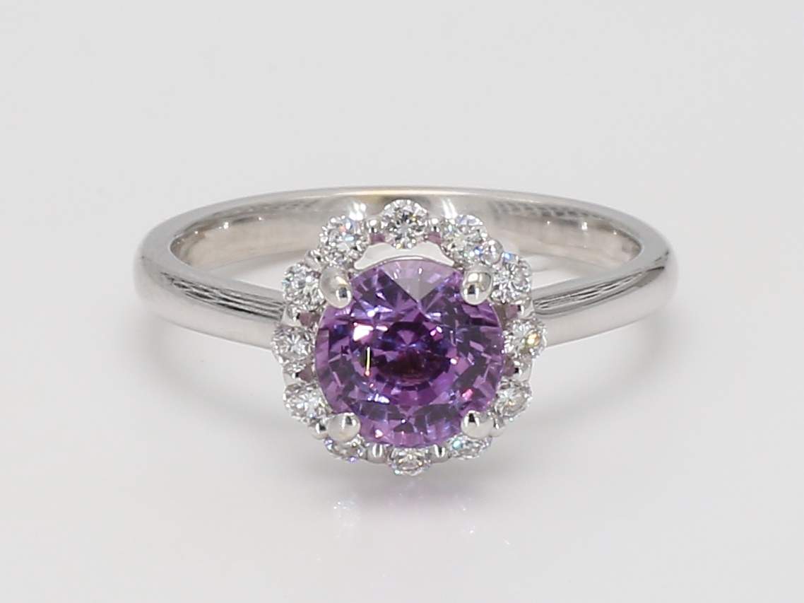 ROUND UNHEATED PURPLE-PINK SAPPHIRE GIA 6177478066 & ROUND DIAMOND 14KW RING