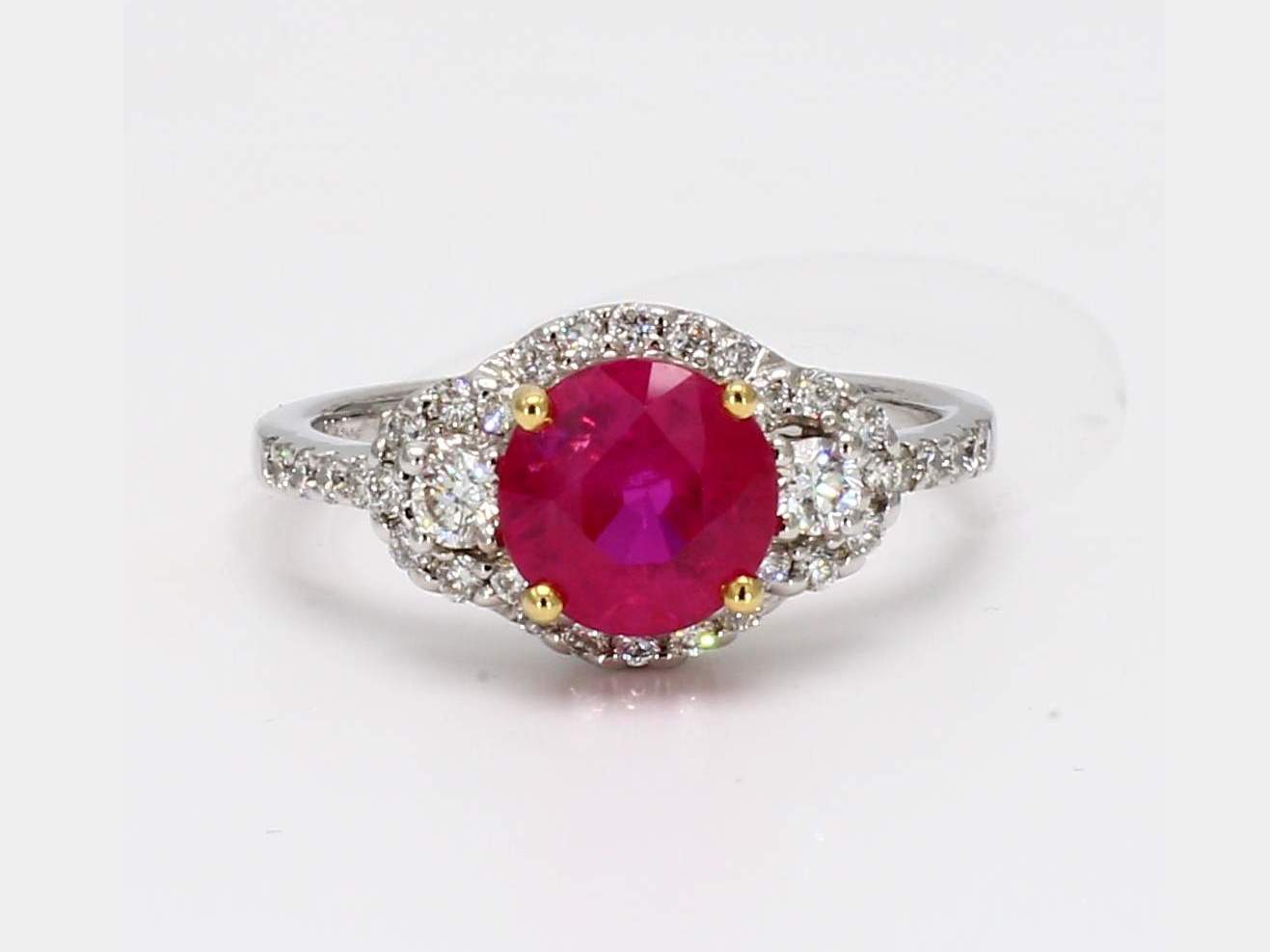 ROUND BURMESE RUBY CDC 1908527 & ROUND DIAMOND 18KW RING