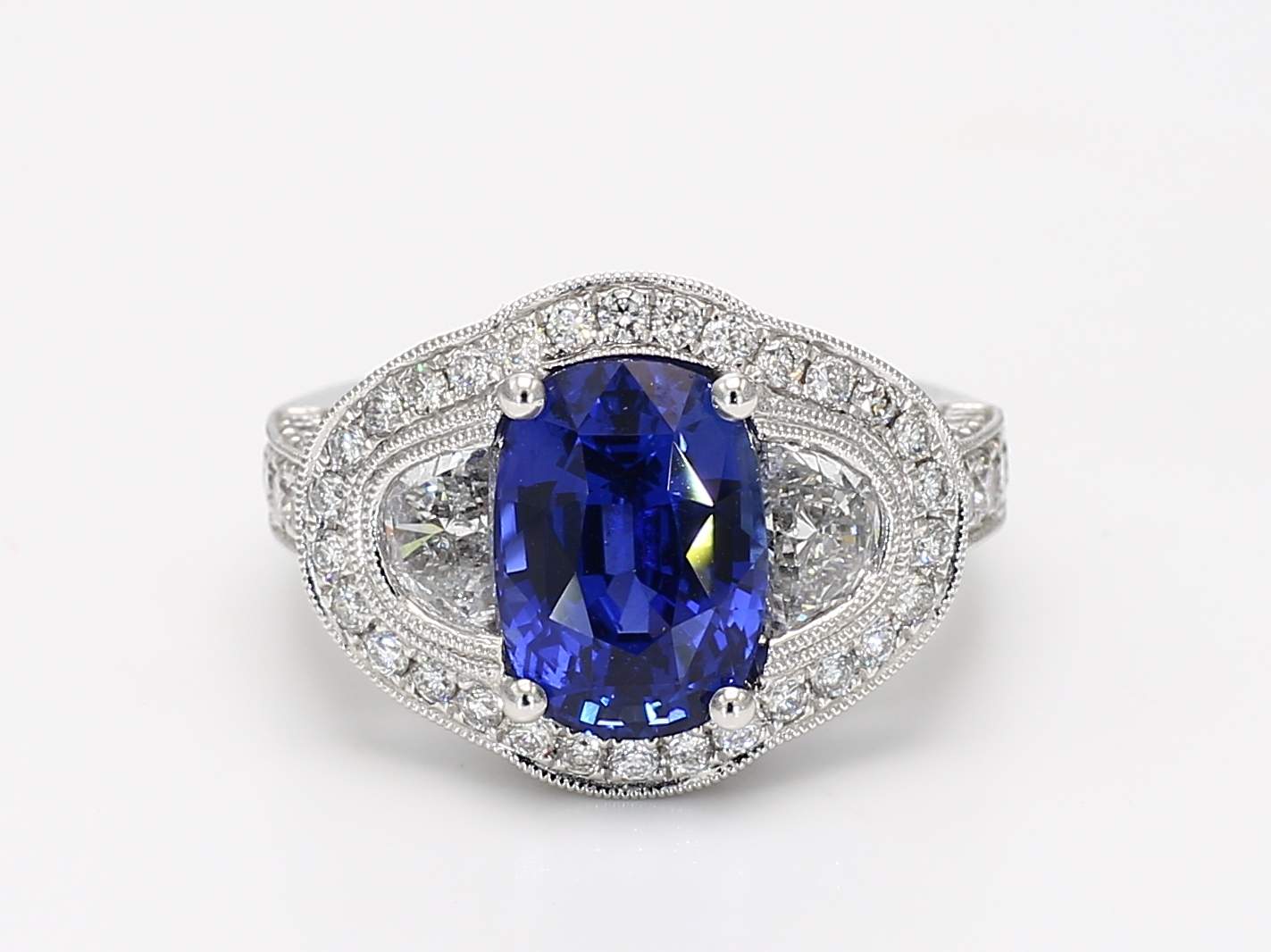 OVAL SAPPHIRE & HALF-MOON DIAMOND & PAVE’ DIAMOND 18KW RING