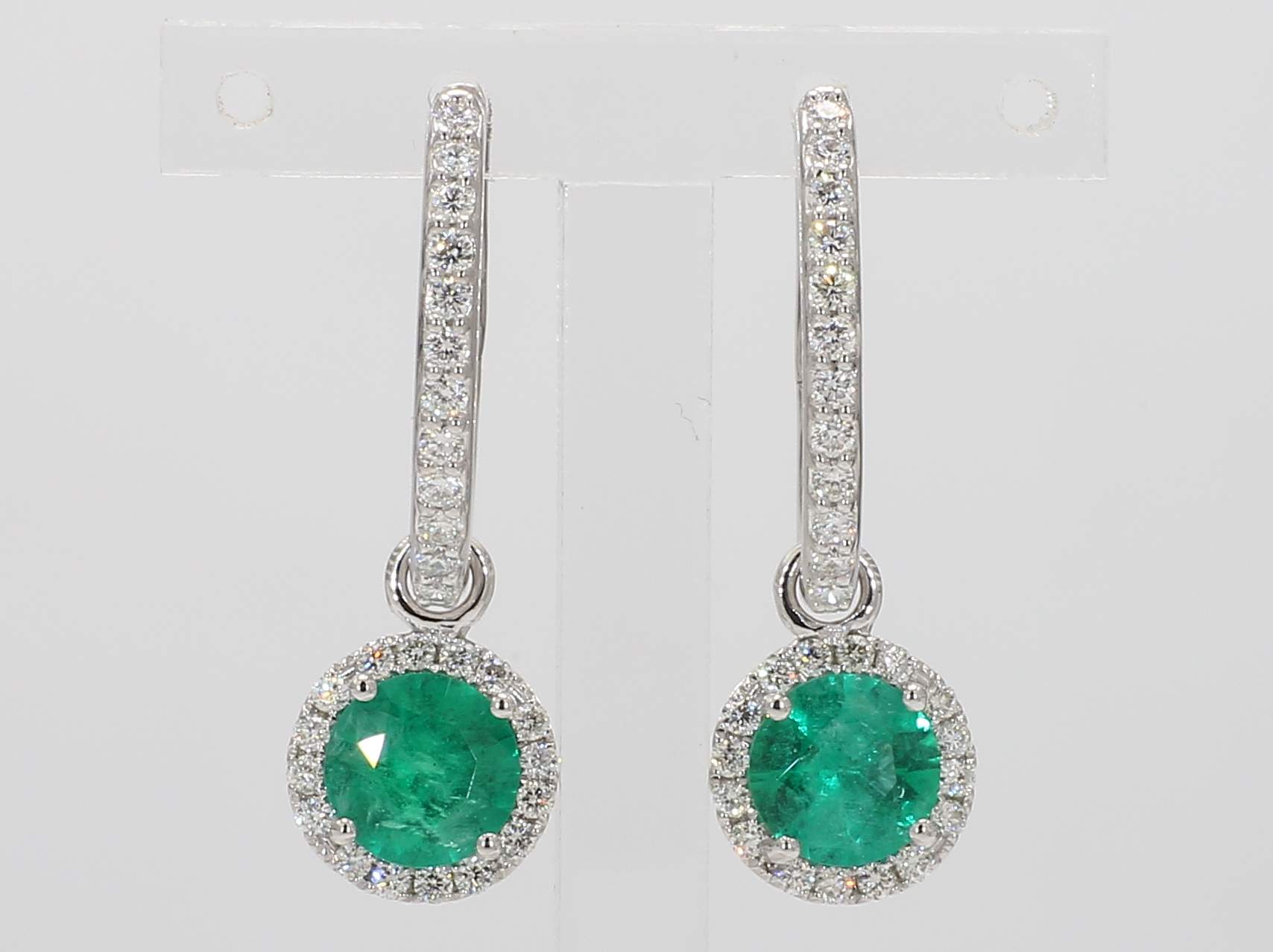 ROUND EMERALD & ROUND DIAMOND 14KW EARRINGS DROP