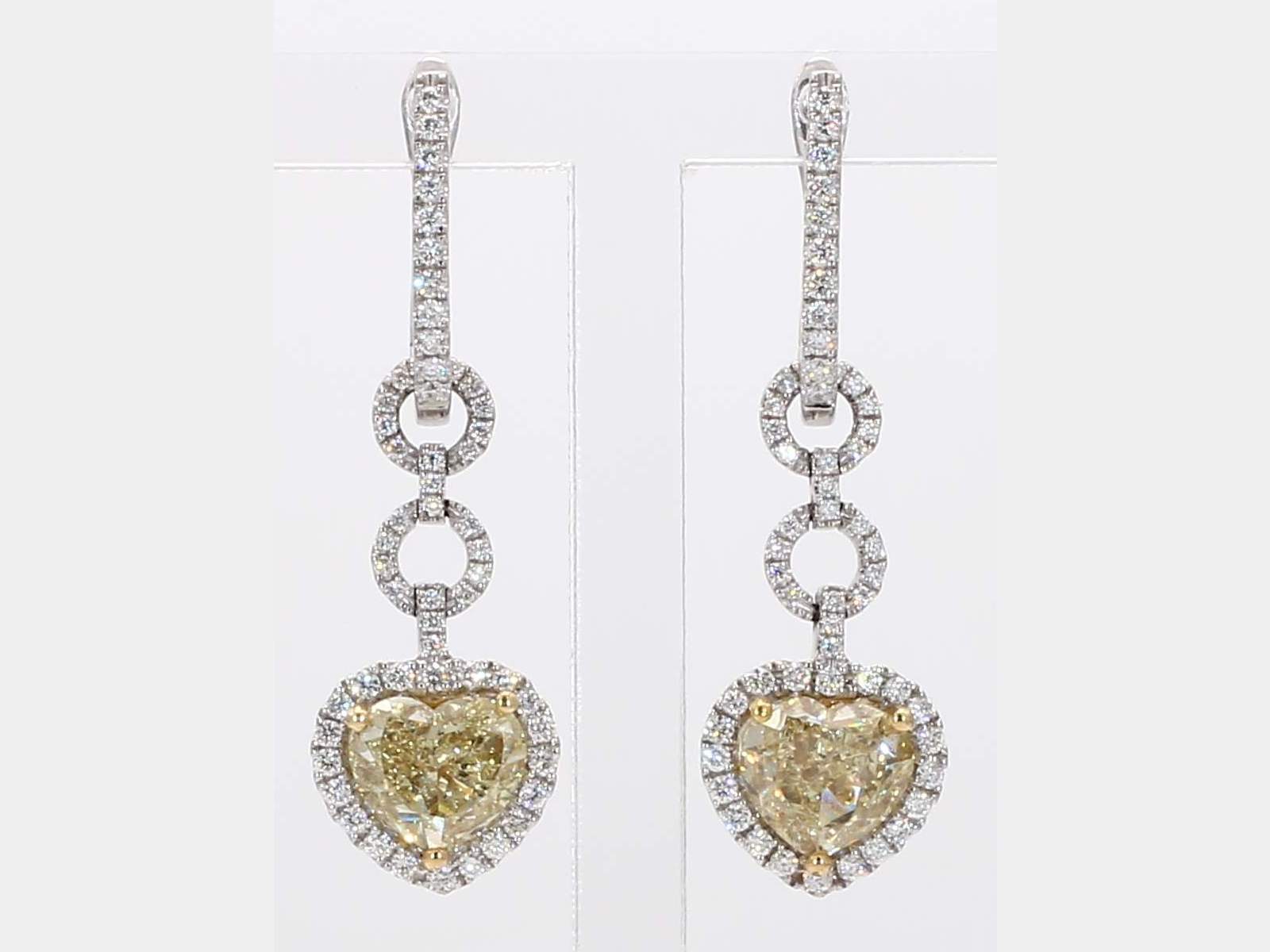 HEART SHAPE YELLOW DIAMOND & ROUND DIAMOND 14KW DANGLE EARRINGS