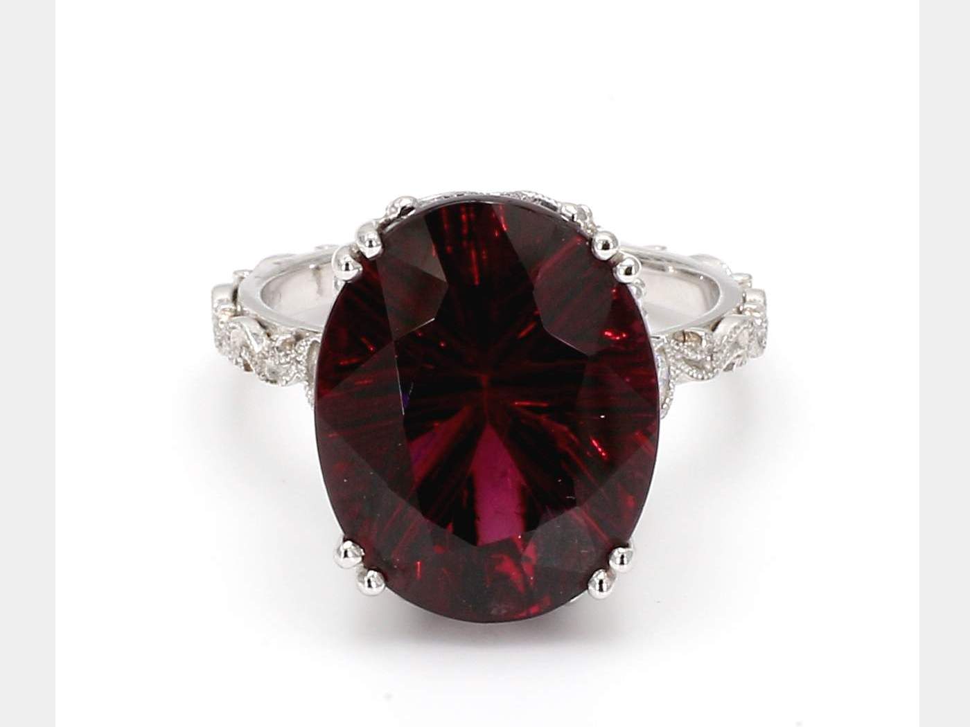 OVAL RHODOLITE GARNET & ROUND DIAMOND 14KW RING