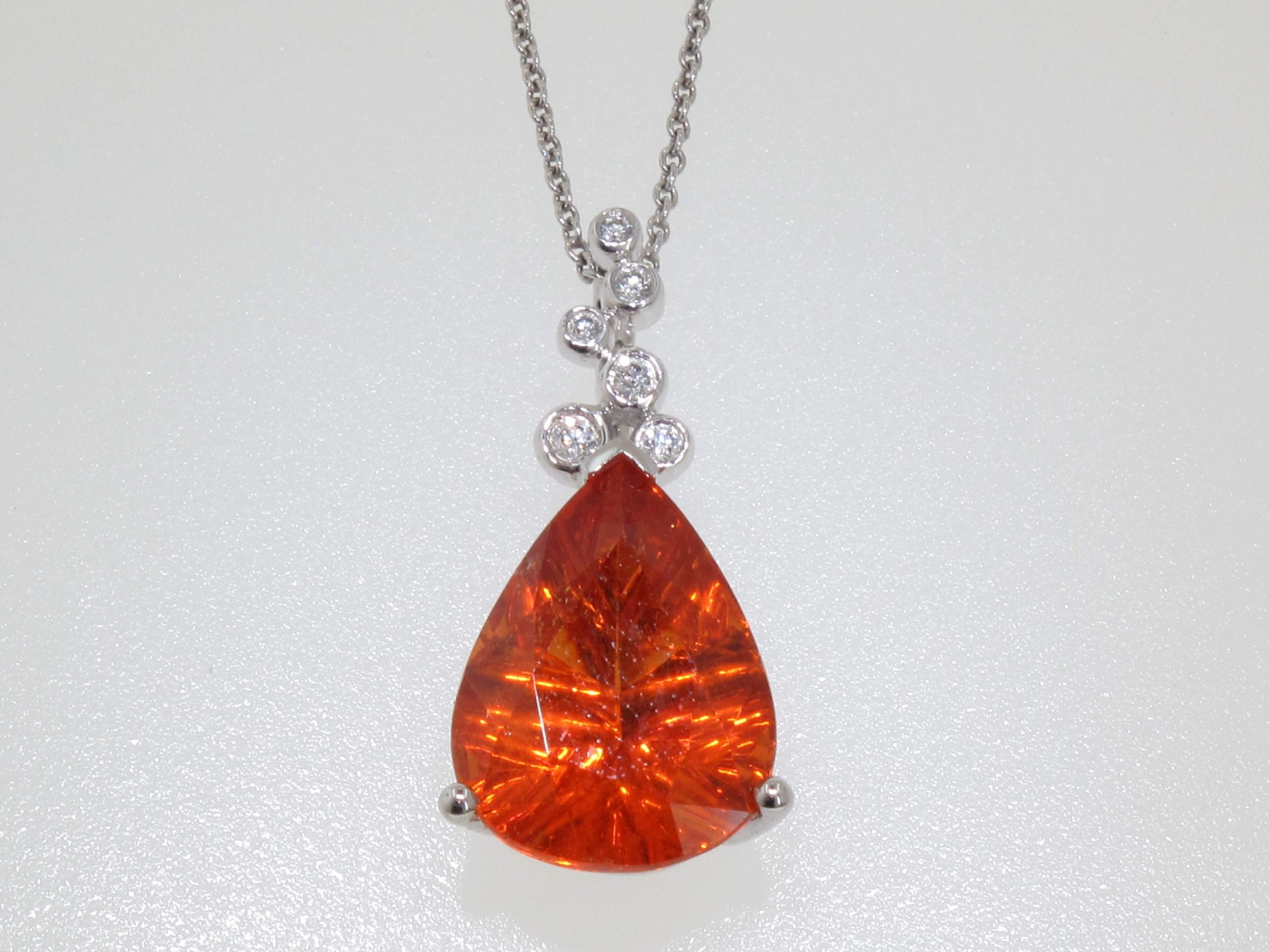 PEAR SHAPE MANDARIN GARNET & ROUND DIAMOND 14KW PENDANT