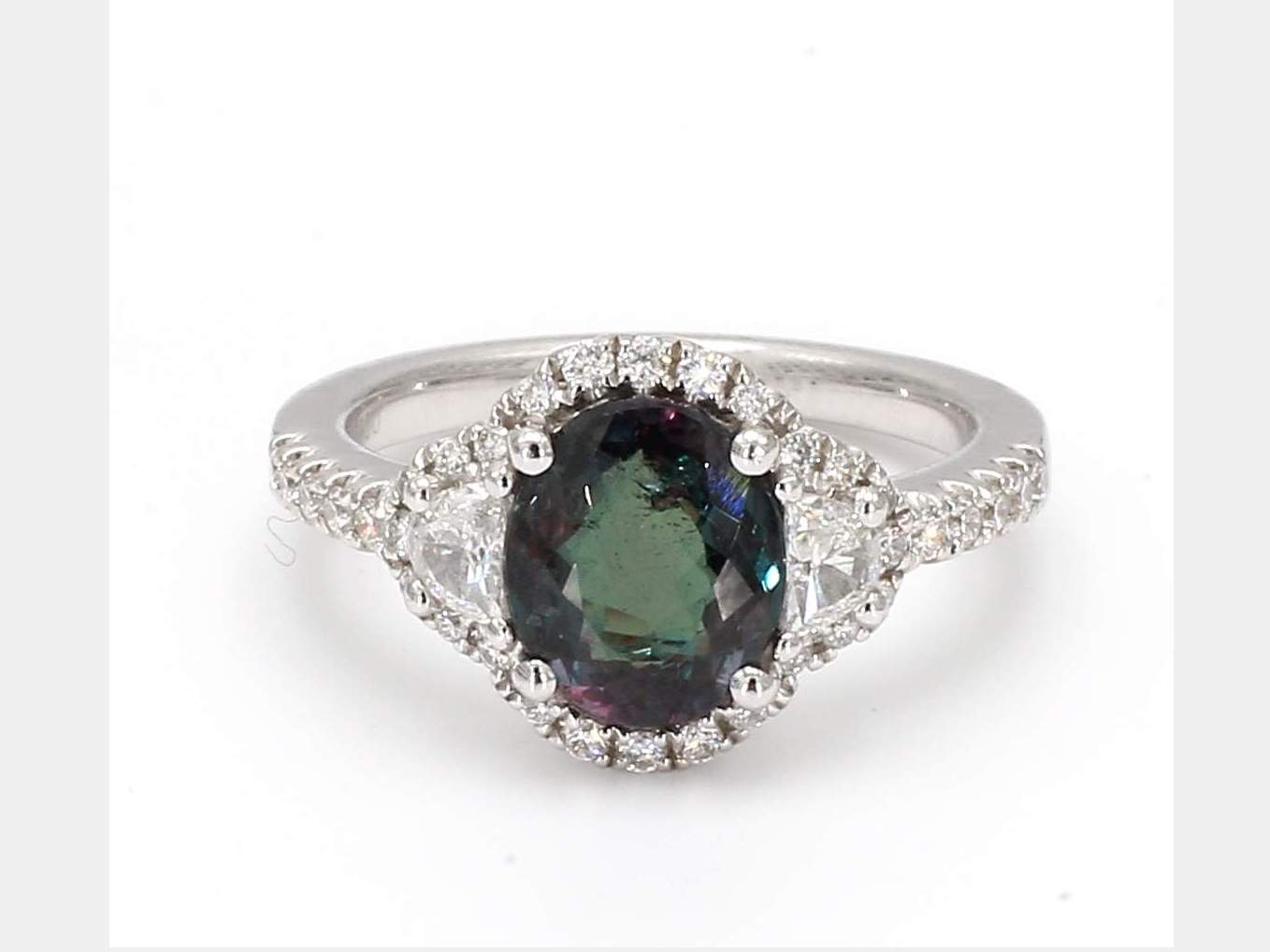 OVAL ALEXANDRITE GIA 2175027878 & HALF MOON & ROUND DIAMOND PLATINUM RING