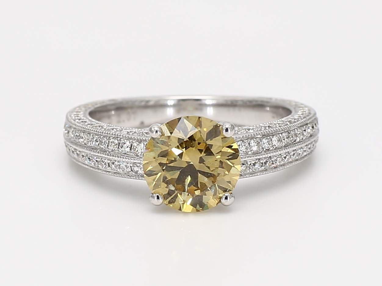 ROUND DIAMOND FANCY BROWNISH YELLOW GIA 2175367677 & ROUND DIAMOND 18KW RING
