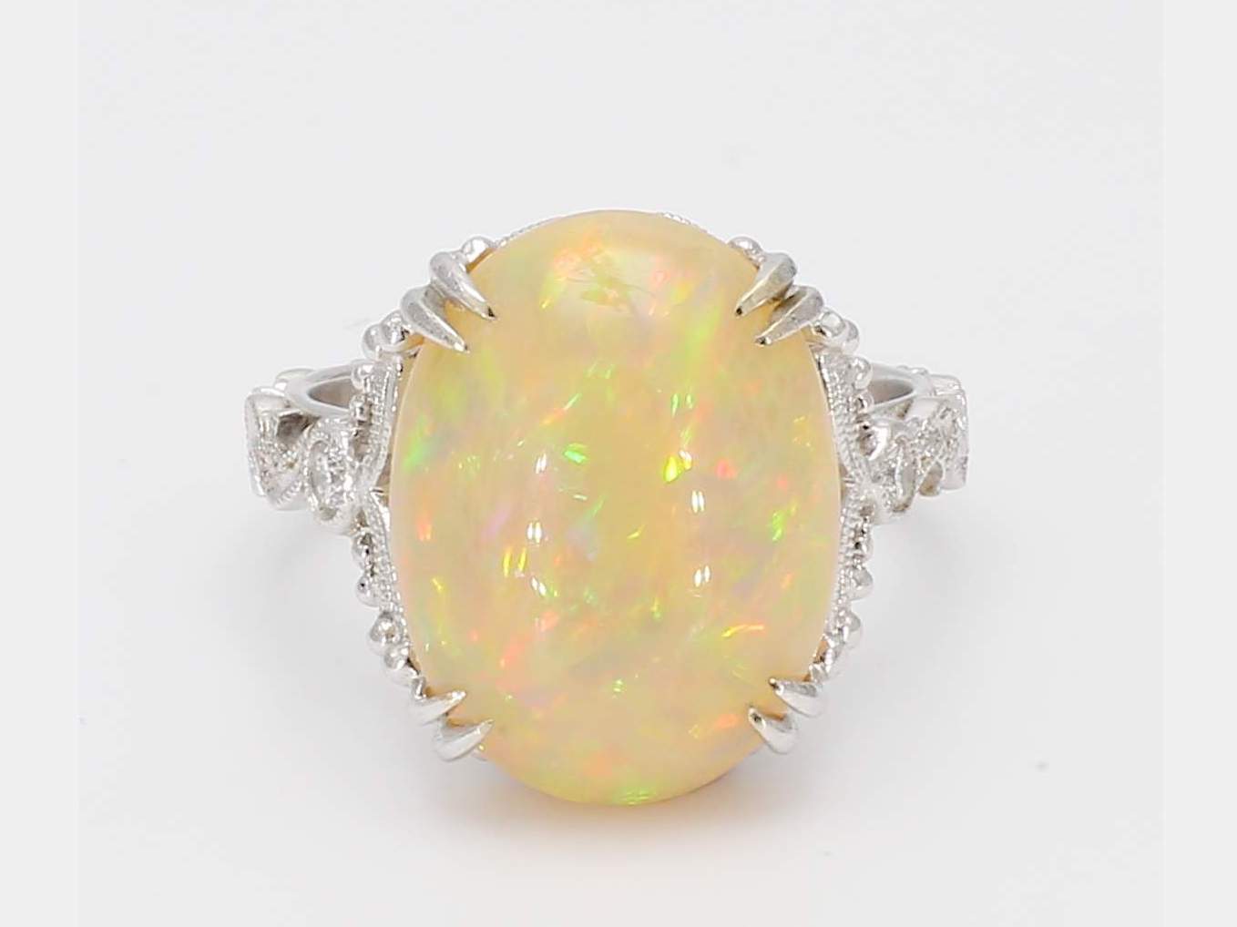 OVAL OPAL & ROUND DIAMOND 14KW RING