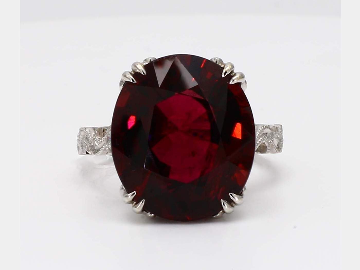 OVAL RUBELLITE & ROUND DIAMOND 14KW RING