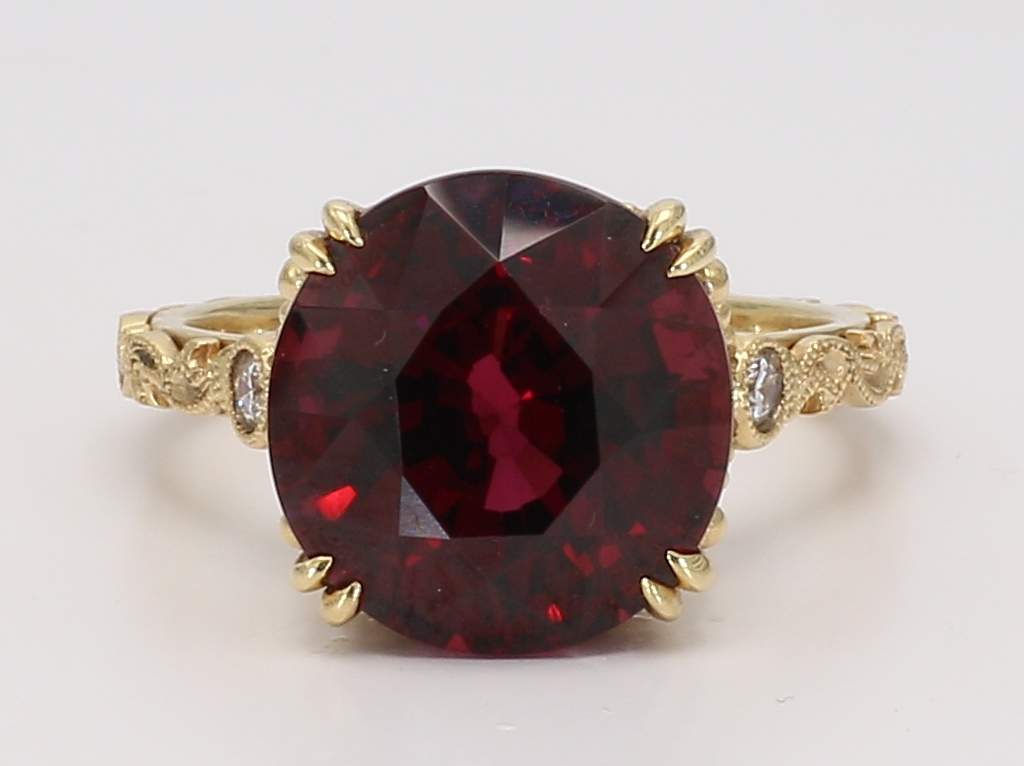 ROUND RHODOLITE GARNET & ROUND DIAMOND 14KY RING