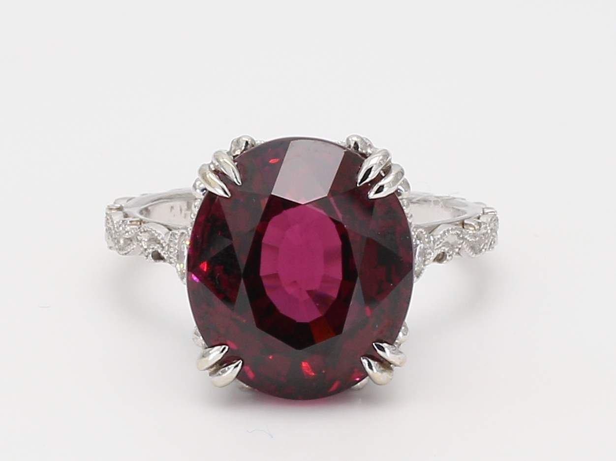 OVAL RHODOLITE GARNET & ROUND DIAMOND 14KW RING