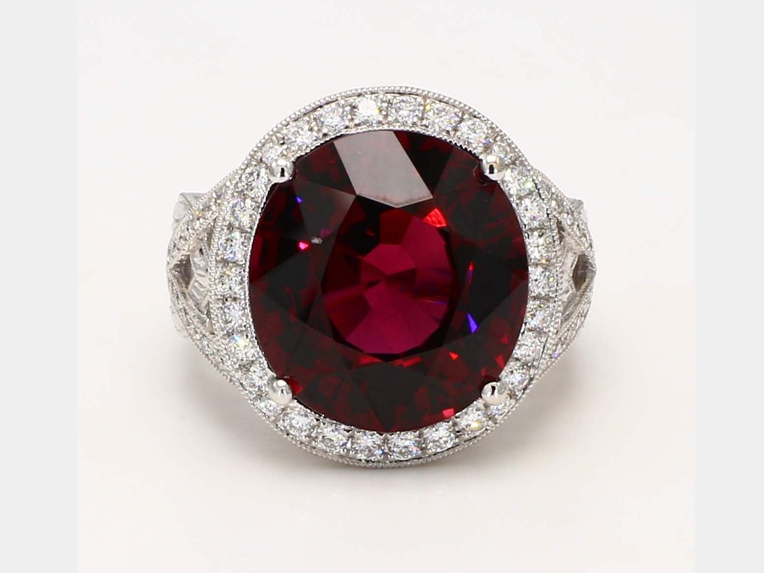 OVAL RHODOLITE GARNET & ROUND DIAMOND 14KW RING
