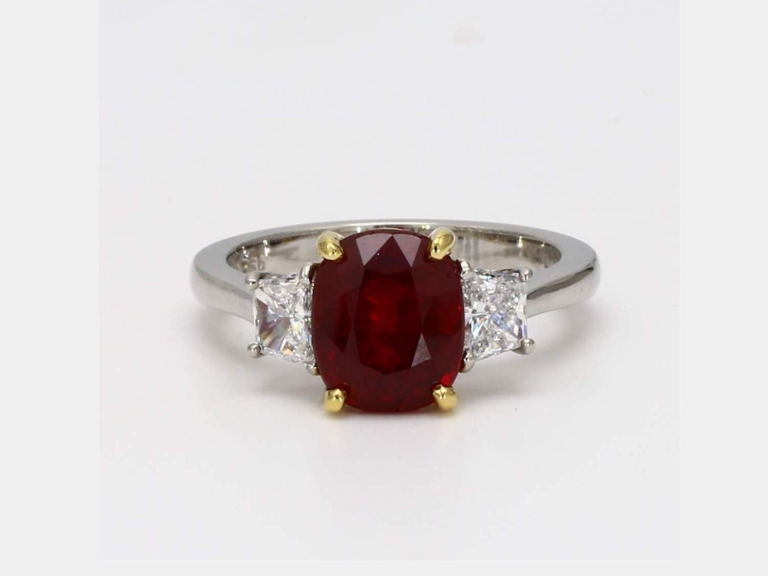 CUSHION RUBY GIA 5172501541 & TRAPEZOID DIAMOND PLATINUM RING