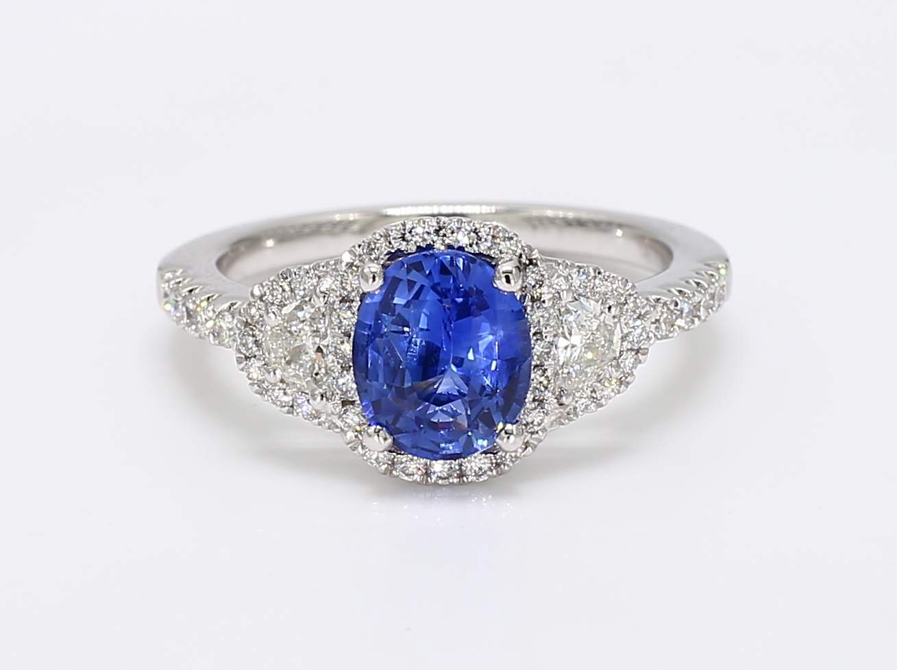 OVAL SAPPHIRE & HALF MOON & ROUND DIAMOND PLATINUM RING