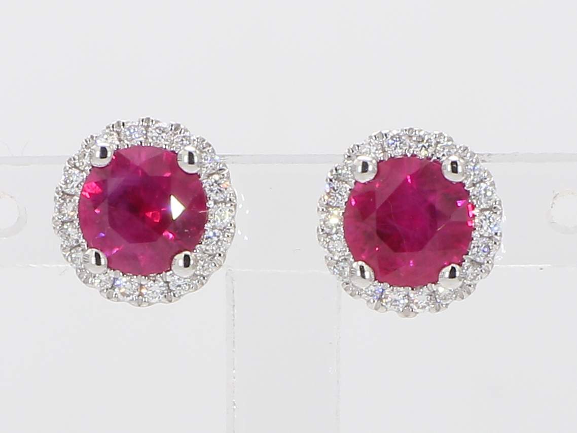 ROUND RUBY & ROUND DIAMOND 14KW EARRING