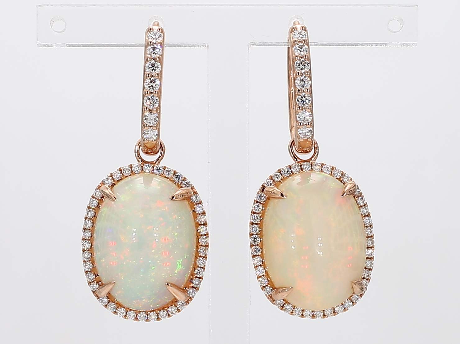 OVAL OPAL & ROUND DIAMOND 14KR DROP EARRING