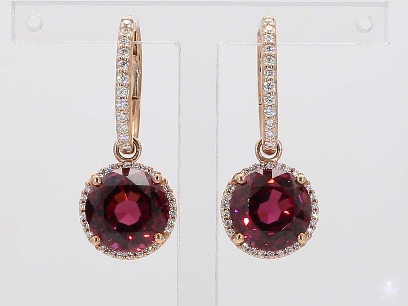 ROUND RHODOLITE GARNET & ROUND DIAMOND 14KR EARRING