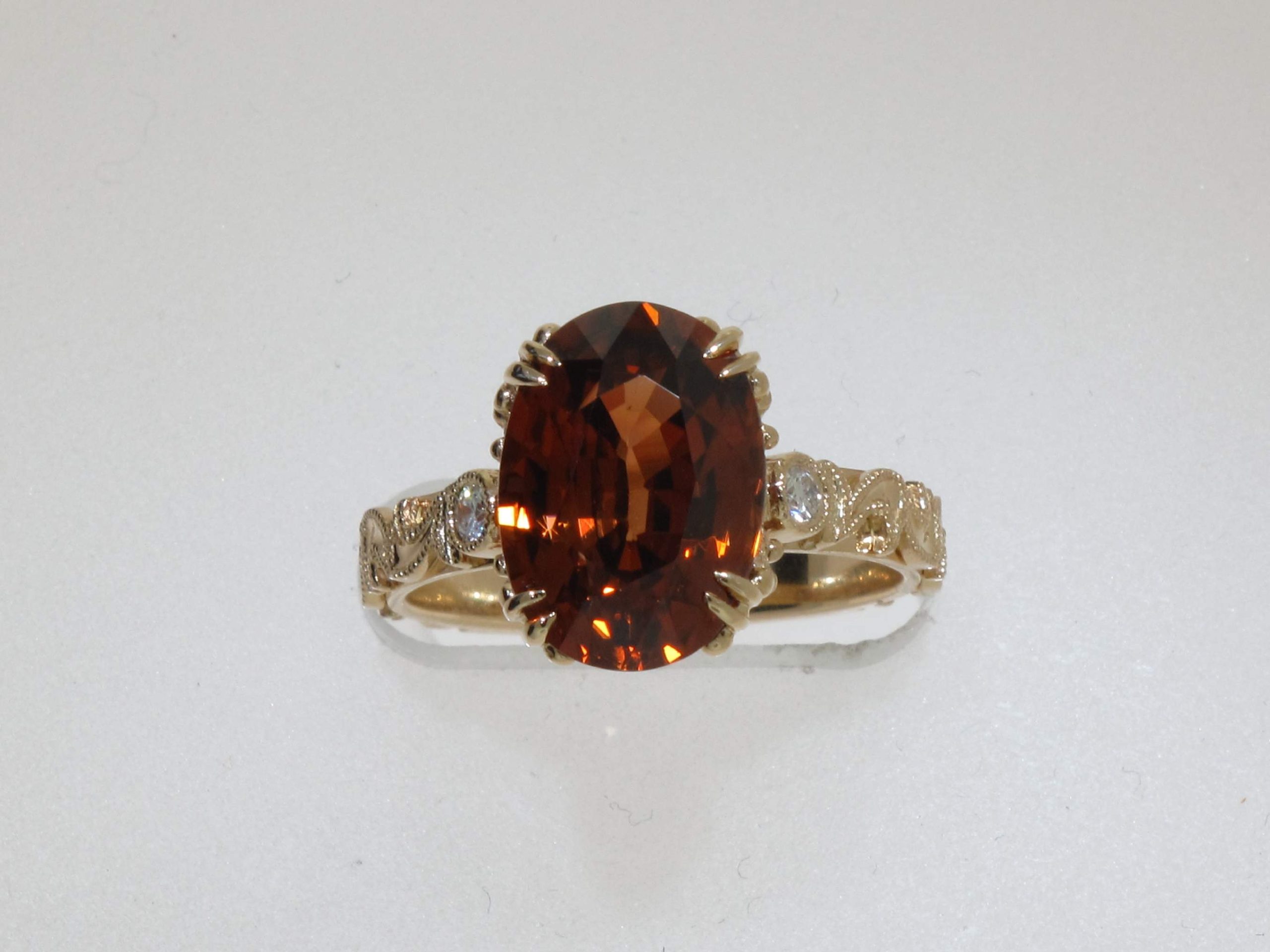 OVAL ORANGE ZIRCON & ROUND DIAMOND 14KY RING