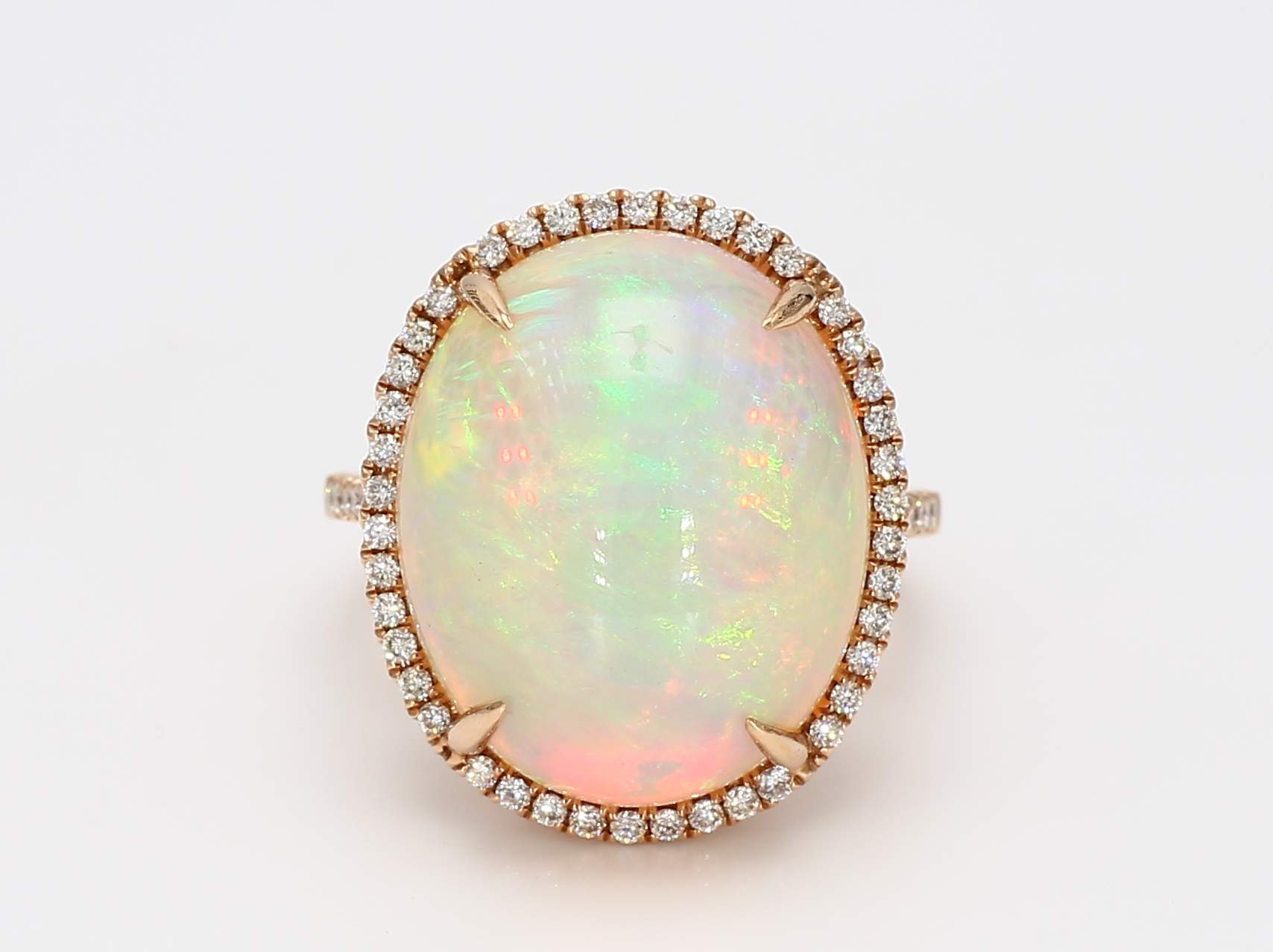 OVAL OPAL & ROUND DIAMOND 14KR RING