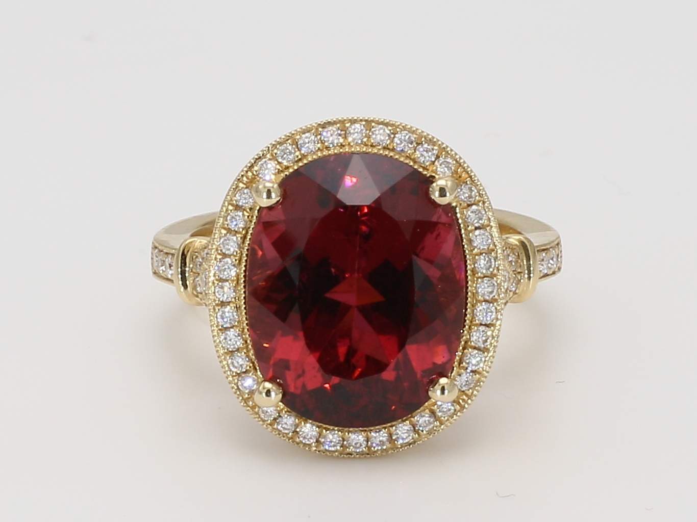 OVAL RUBELLITE & ROUND DIAMOND 14KY RING