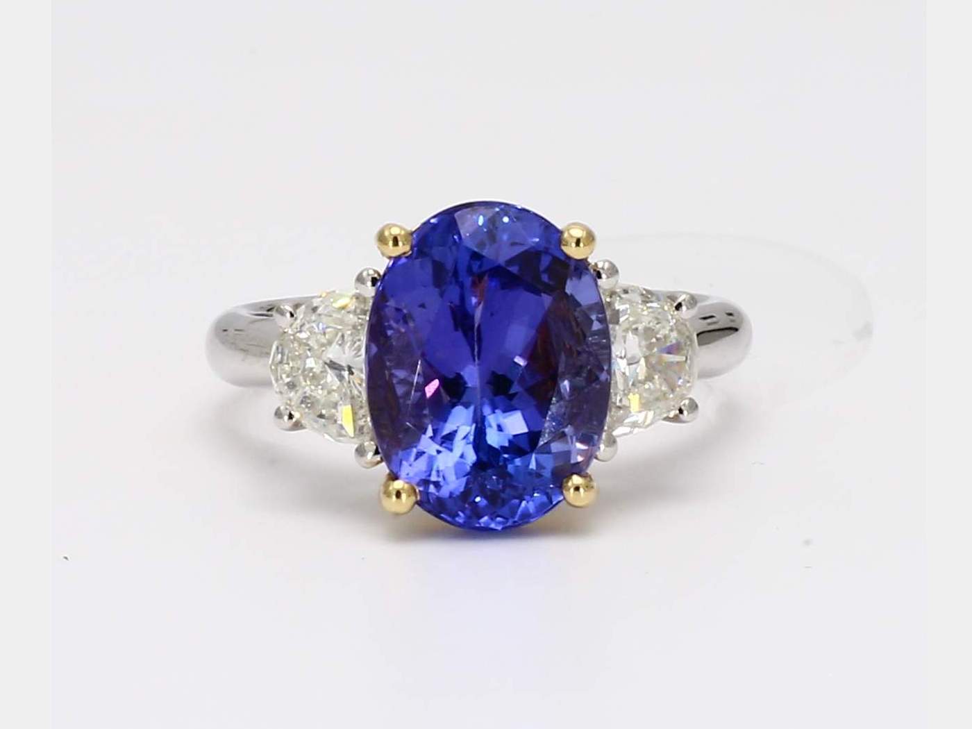 OVAL TANZANITE & HALF MOON DIAMOND 14KT RING