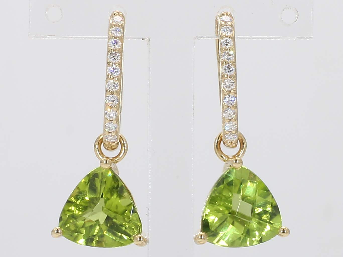 TRILLION PERIDOT & ROUND DIAMOND 14KY EARRING