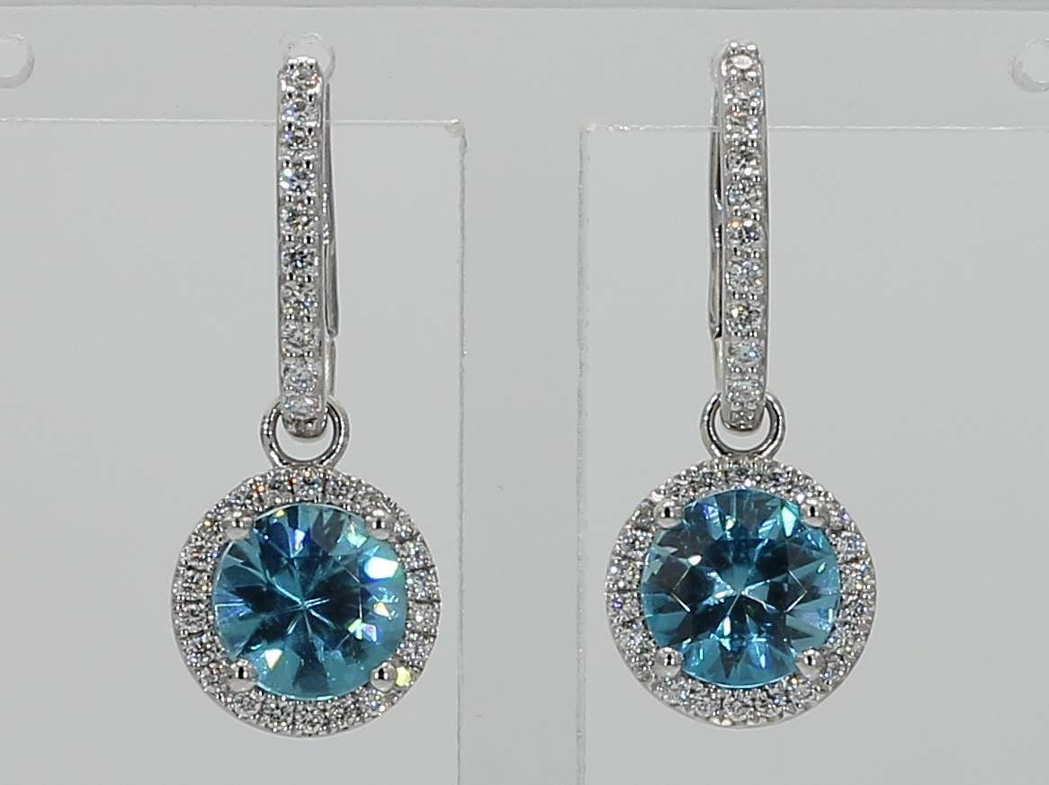 ROUND BLUE ZIRCON & ROUND DIAMOND 14KW EARRING