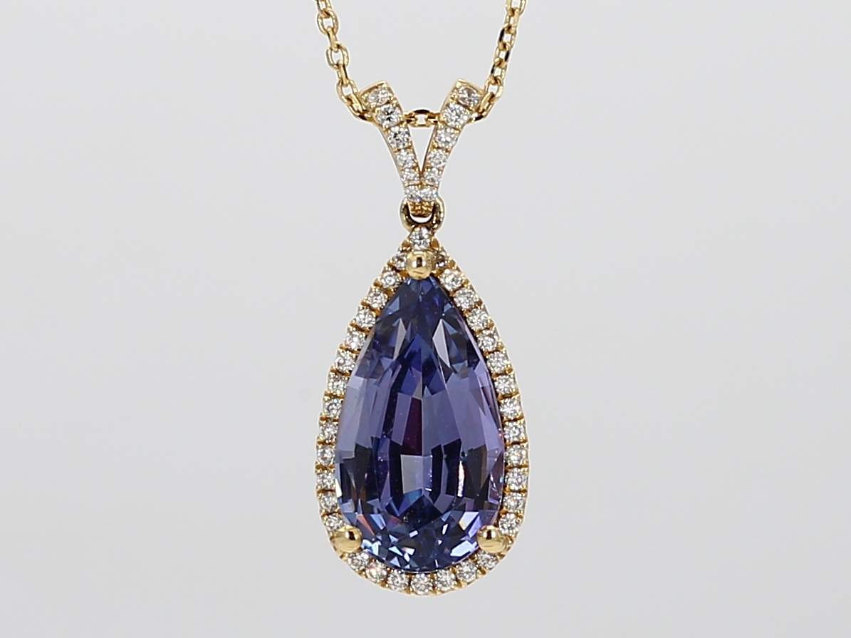 PEAR SHAPE TANZANITE & ROUND DIAMOND 14KY PENDANT