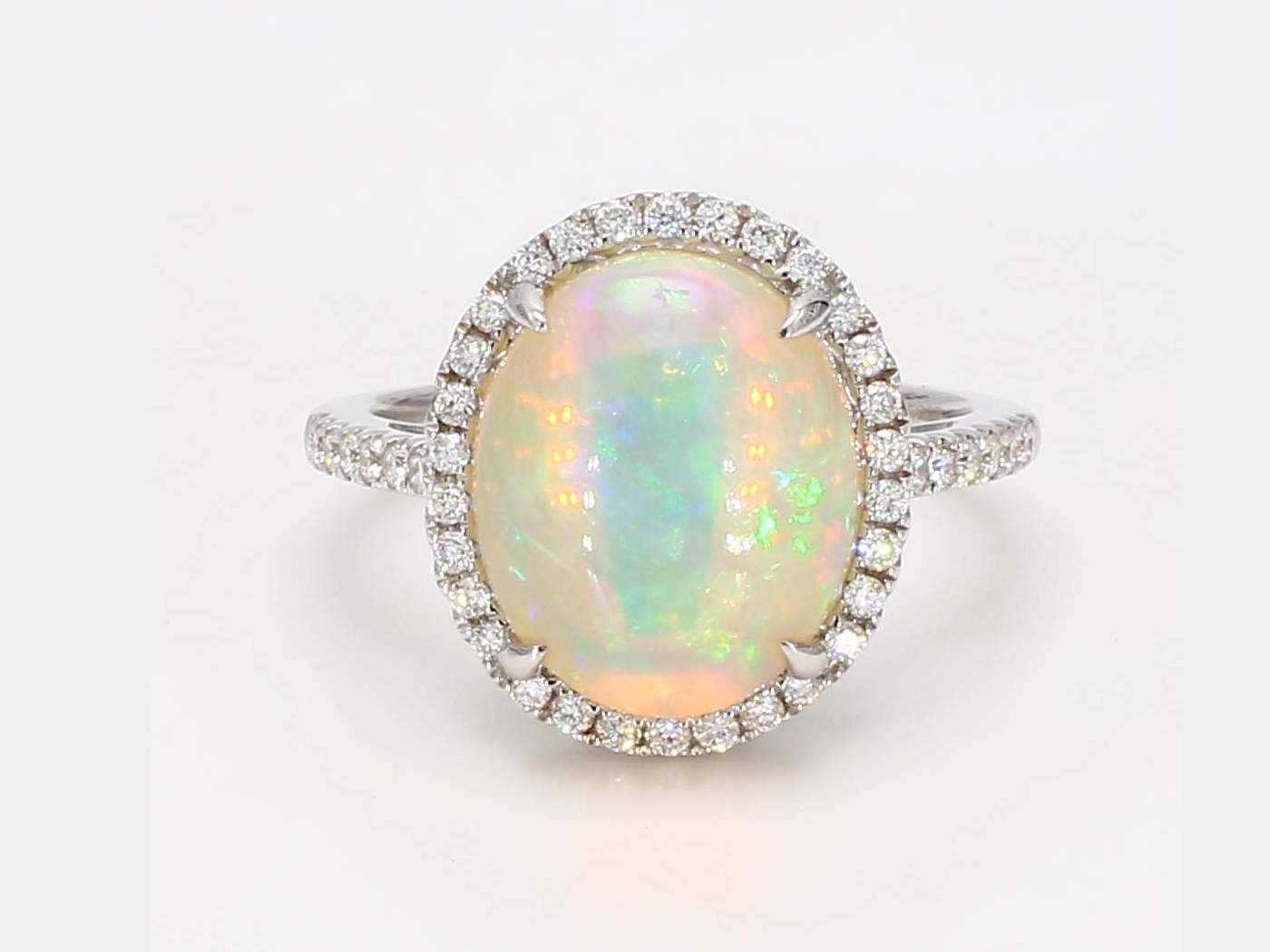 OVAL OPAL & ROUND DIAMOND 14KW RING