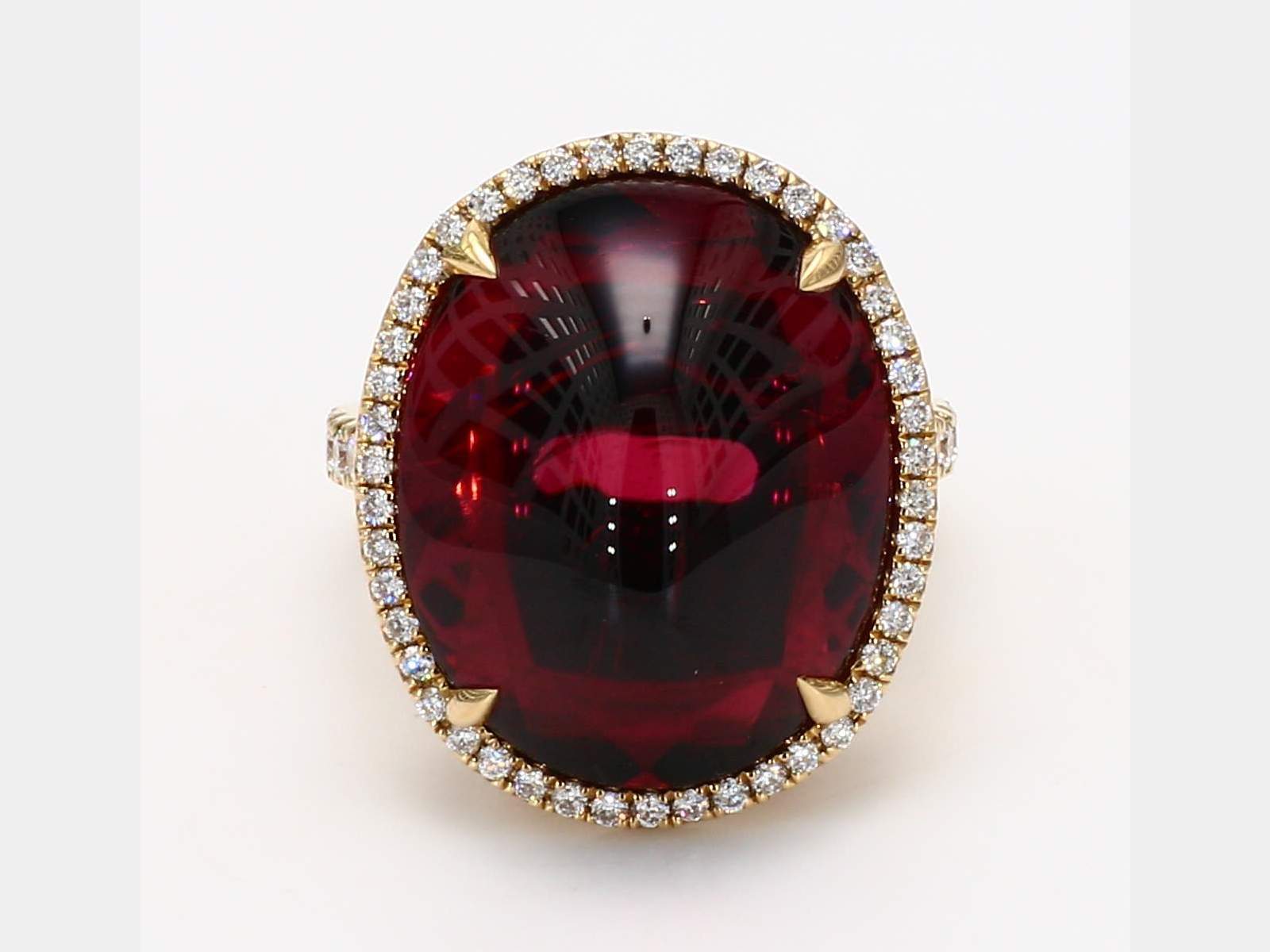 SUGAR LOAF RUBELLITE & ROUND DIAMOND 14KY RING
