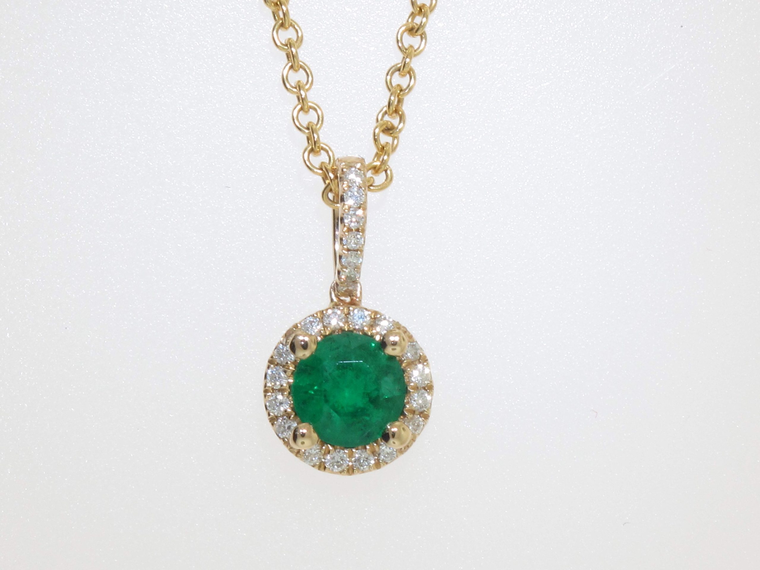 ROUND EMERALD & ROUND DIAMOND 14KY PENDANT
