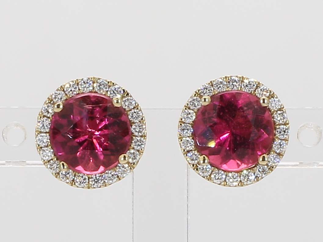 ROUND RUBELLITE & ROUND DIAMOND 14KY EARRING