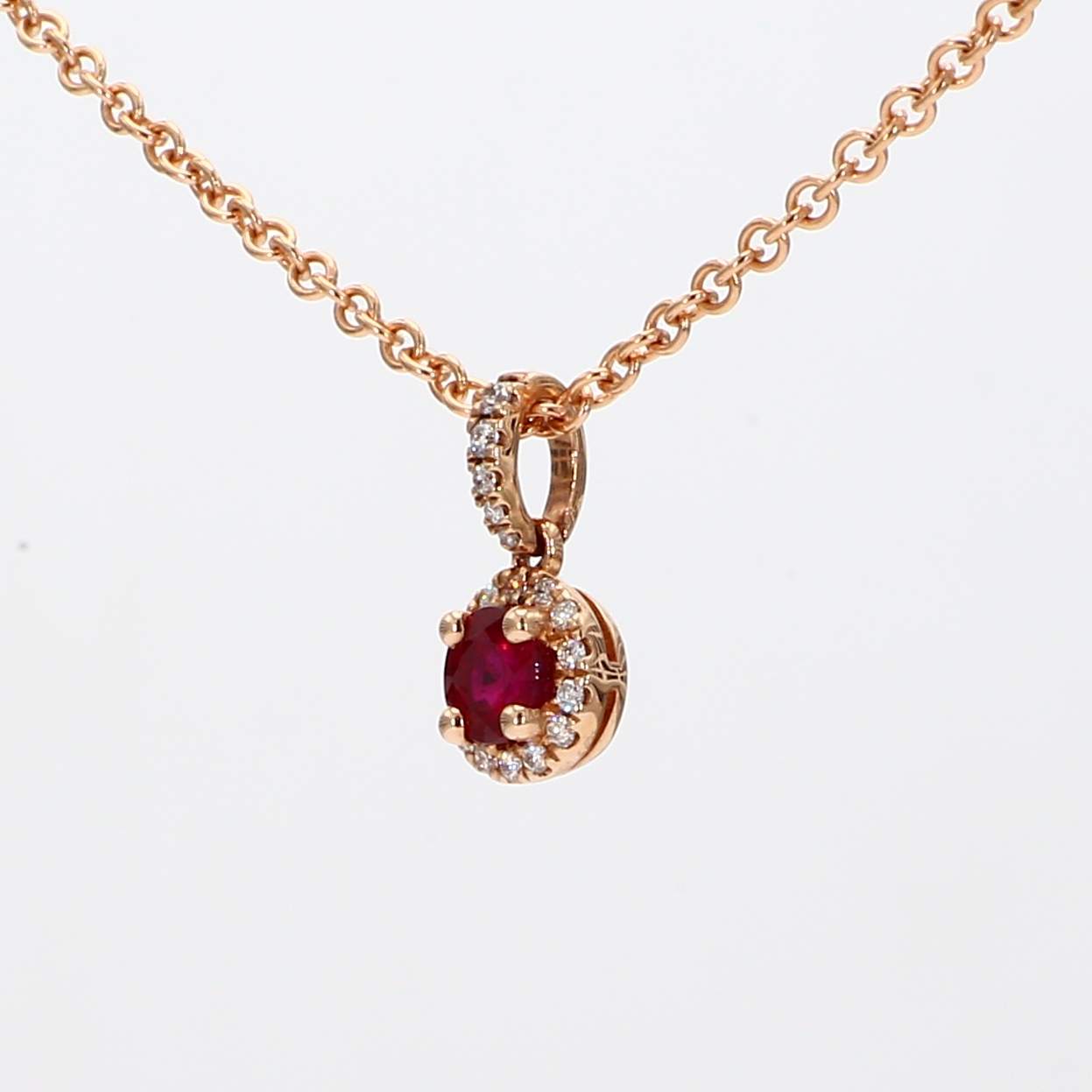 ROUND RUBY & ROUND DIAMOND 14KR PENDANT