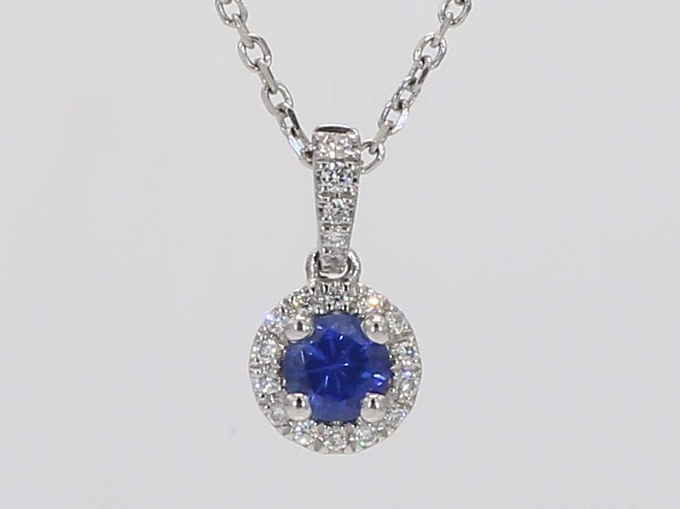 ROUND SAPPHIRE & ROUND DIAMOND 14KW PENDANT
