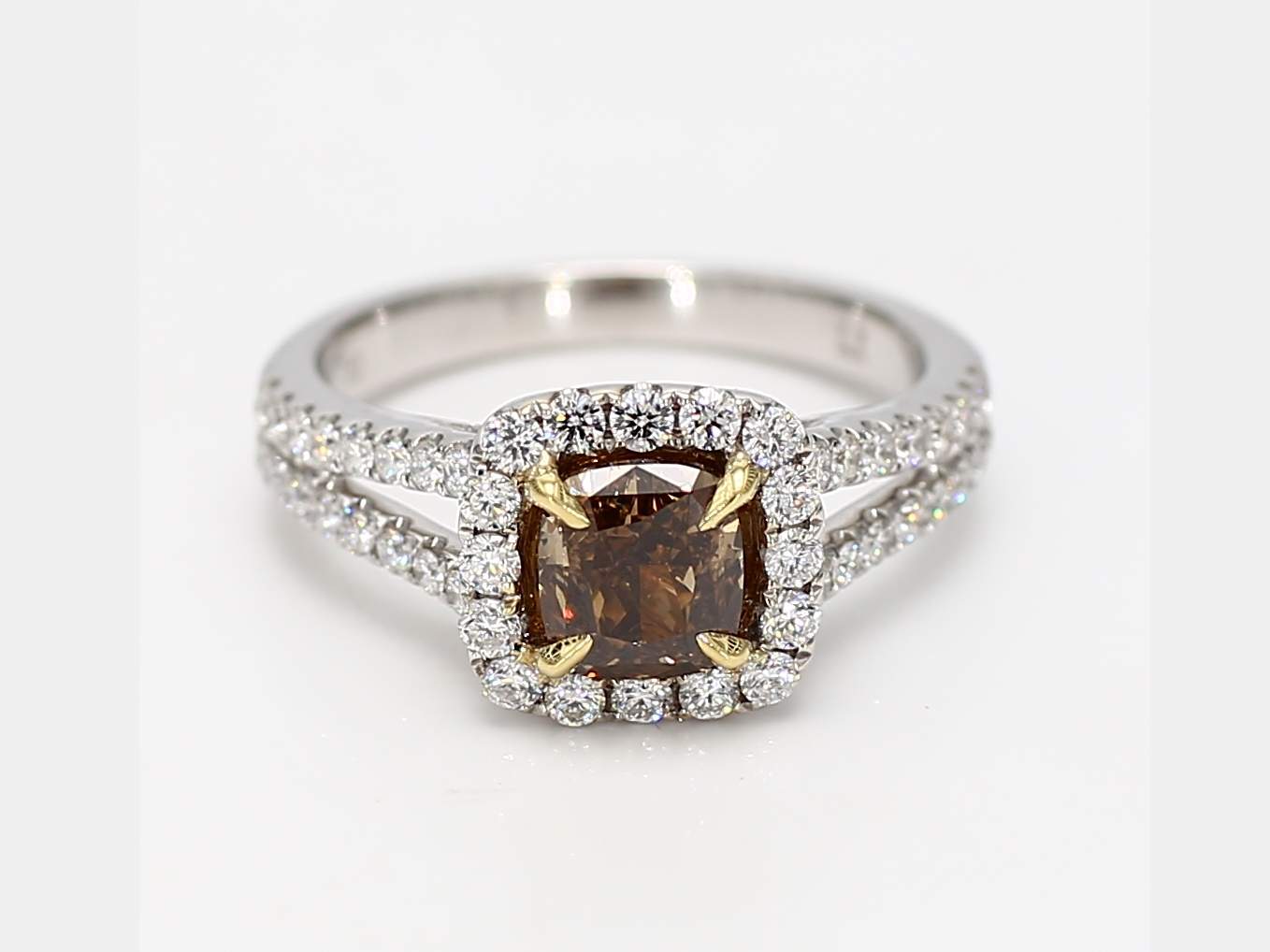 CUSHION DIAMOND FANCY DARK YELLOWISH BROWN SI2 GIA 1206384231 & ROUND DIAMOND 18KW RING