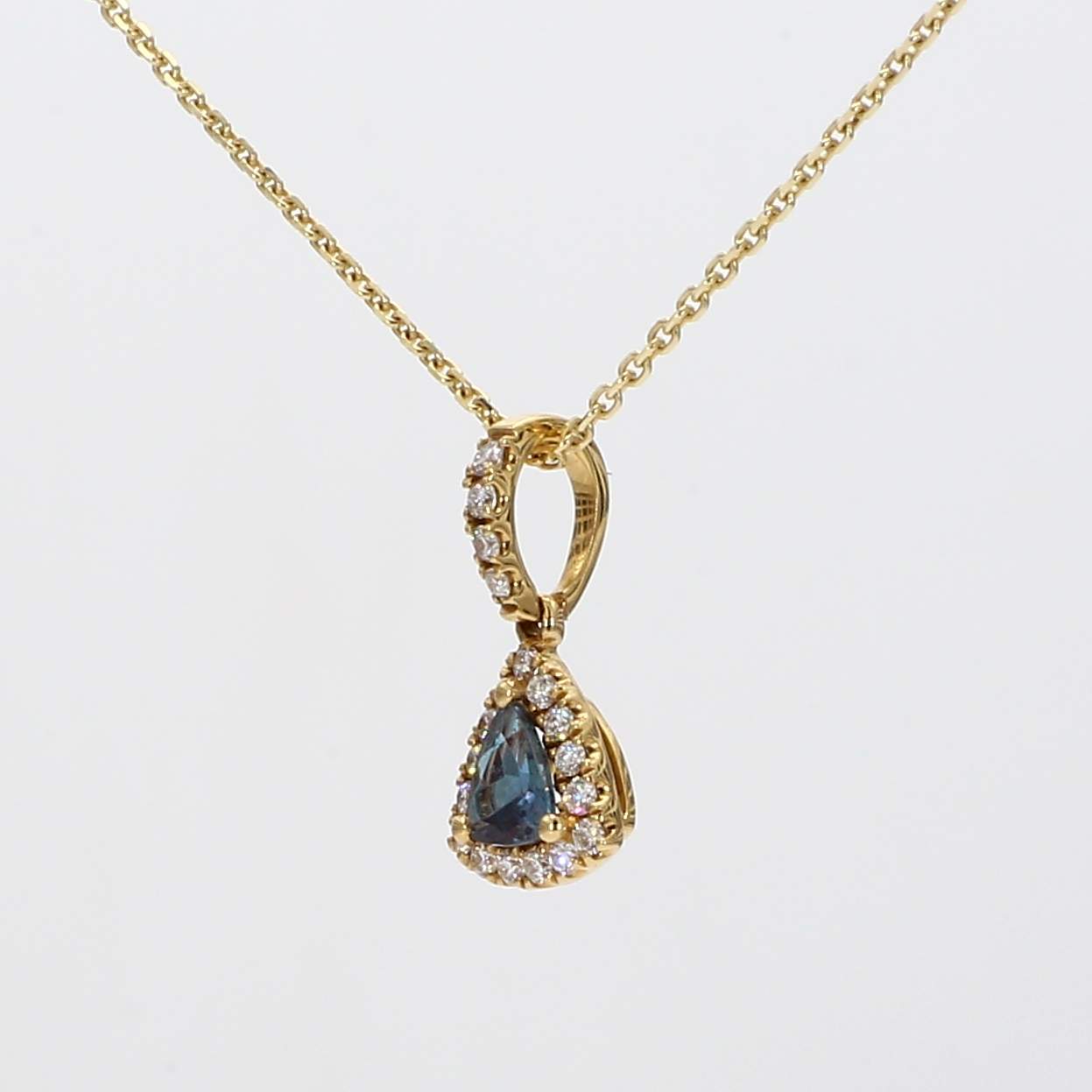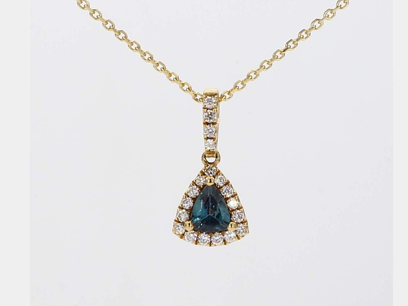 TRILLION ALEXANDRITE & ROUND DIAMOND 18KY PENDANT