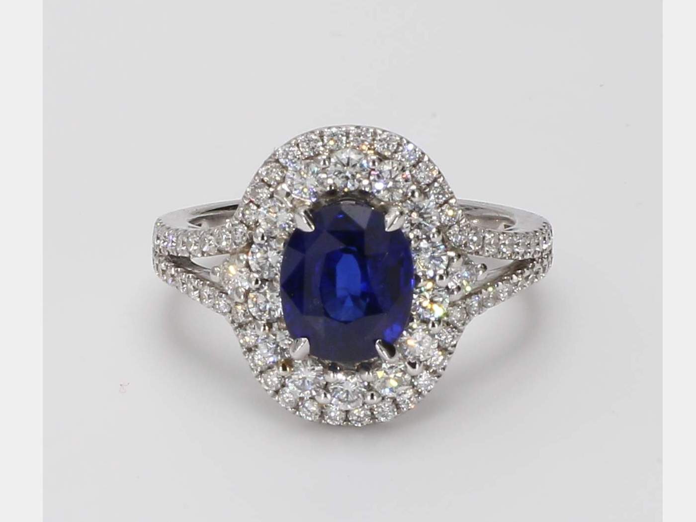 CUSHION SAPPHIRE & ROUND DIAMOND 18KW RING