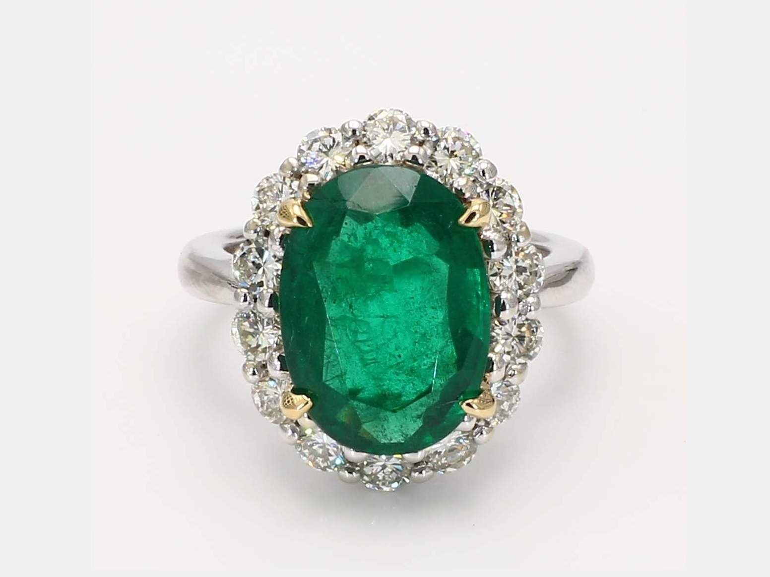 OVAL EMERALD MINOR CDC 2108888 & ROUND DIAMOND PLATINUM RING
