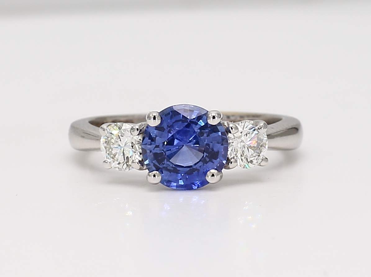 ROUND SAPPHIRE & ROUND DIAMOND 18KW RING
