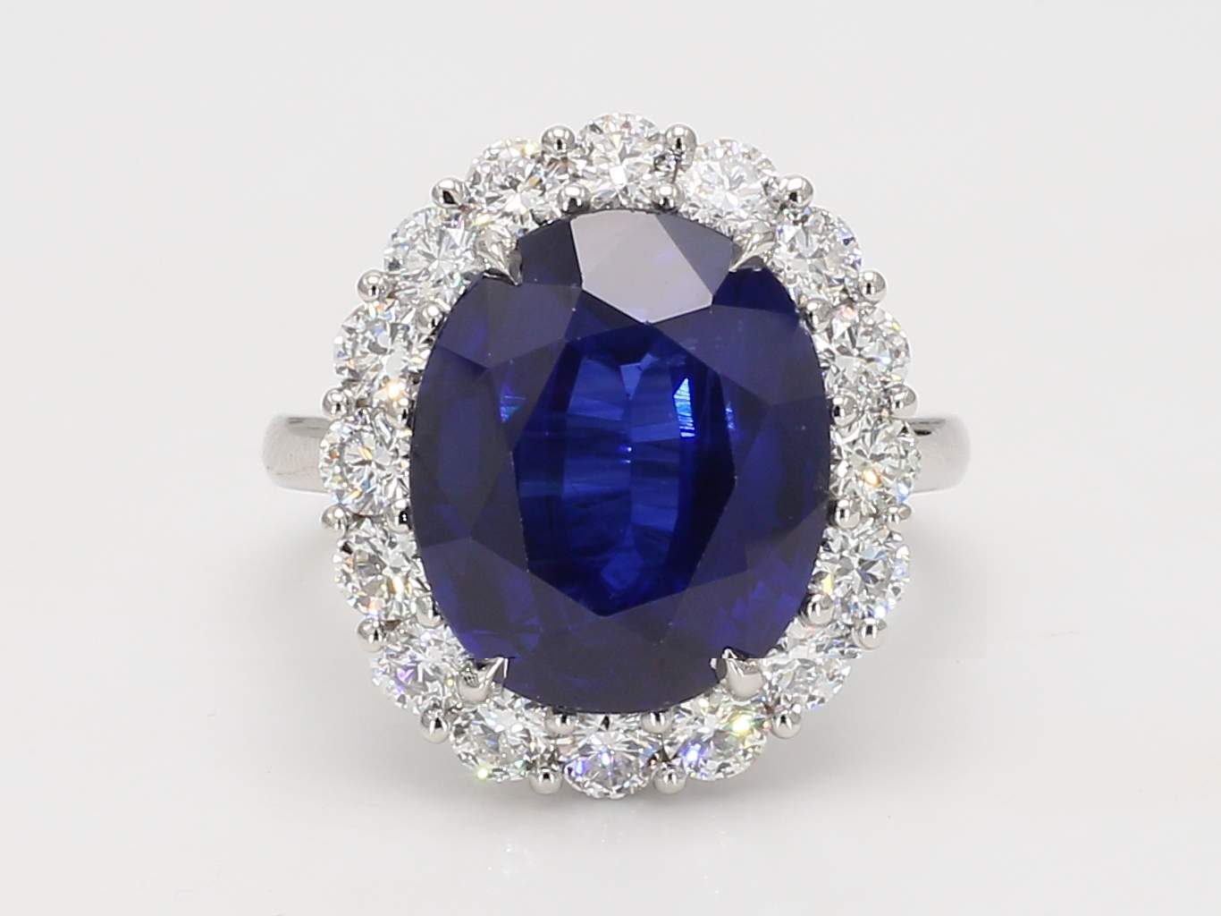 OVAL ROYAL BLUE CEYLON SAPPHIRE CDC 2208850 & ROUND DIAMOND PLATINUM RING
