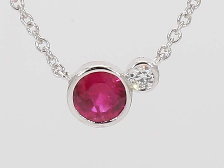 ROUND RUBY & ROUND DIAMOND 14KW NECKLACE