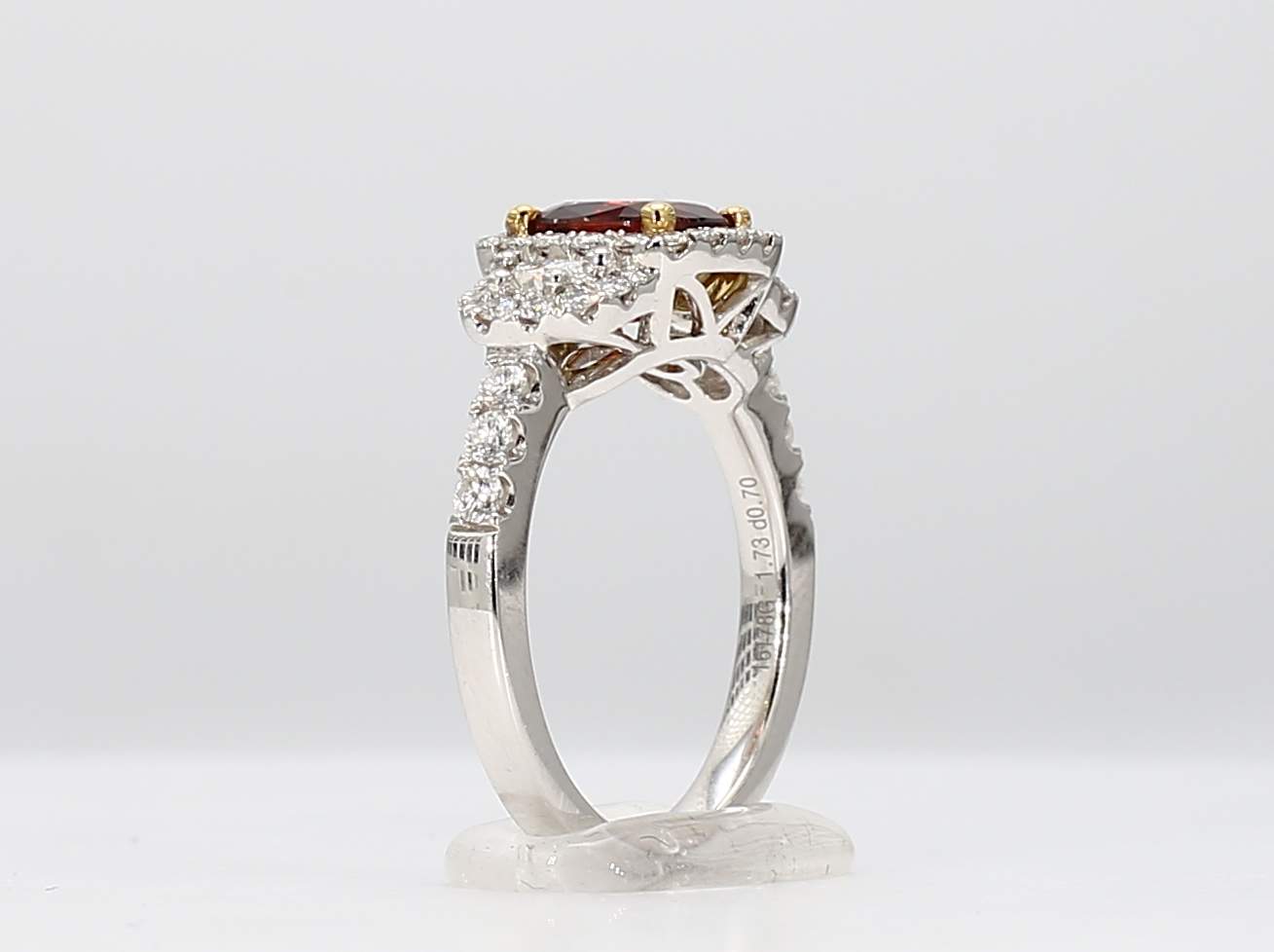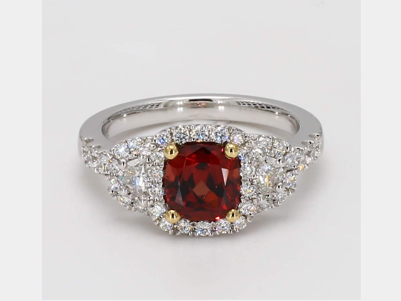 CUSHION UNHEATED RUBY GIA 2195837344 & HALF MOON & ROUND DIAMOND PLATINUM RING