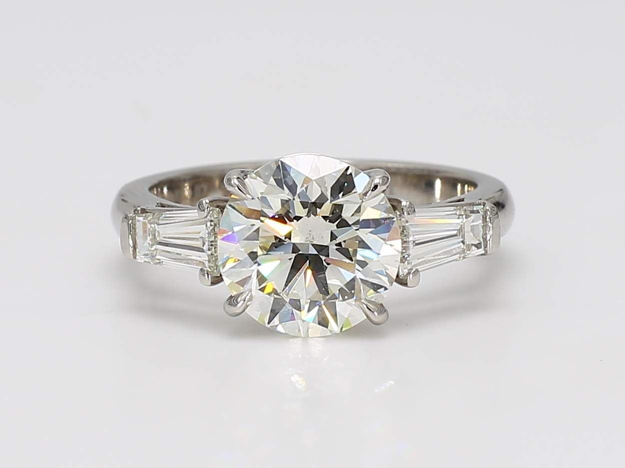ROUND DIAMOND K SI2 GIA 6451956258 & TAPER BAGUETTE DIAMOND PLATINUM RING