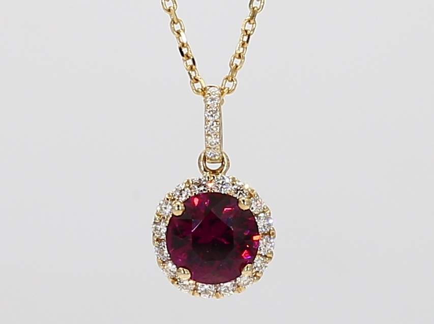 ROUND UMBALITE GARNET & ROUND DIAMOND 14KY PENDANT