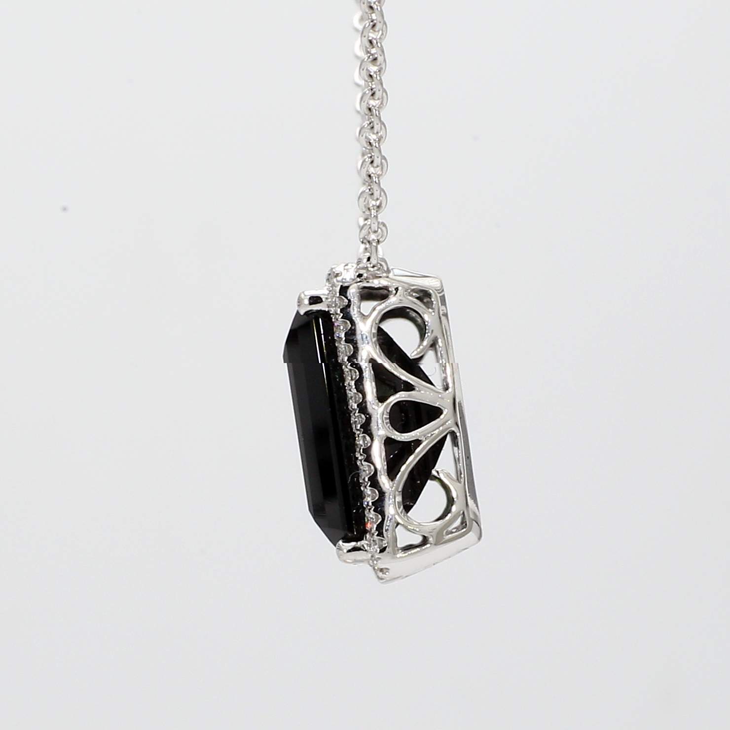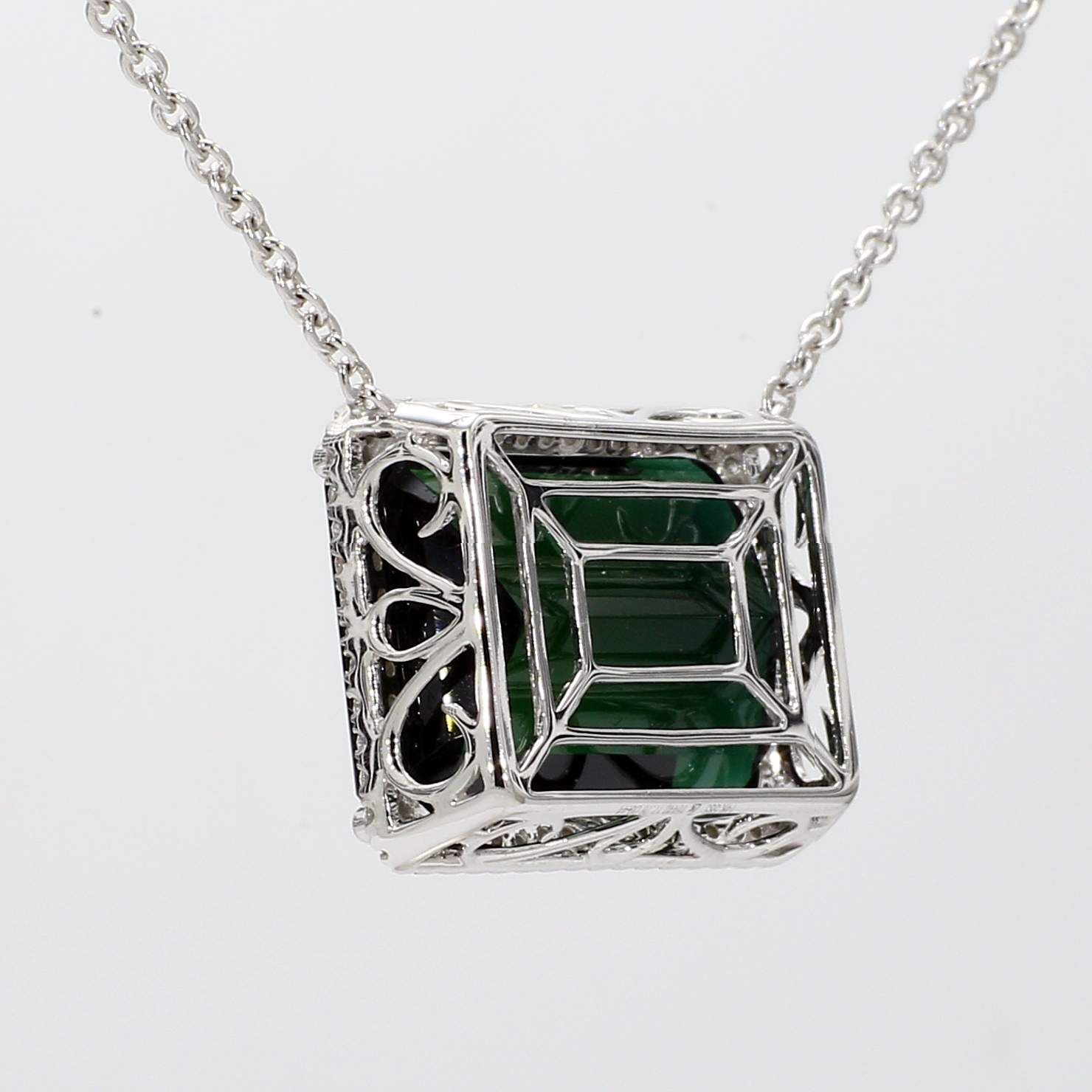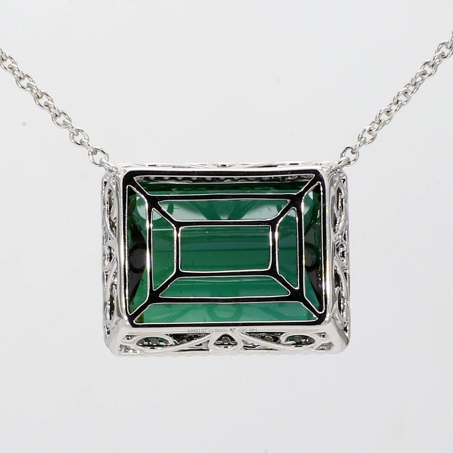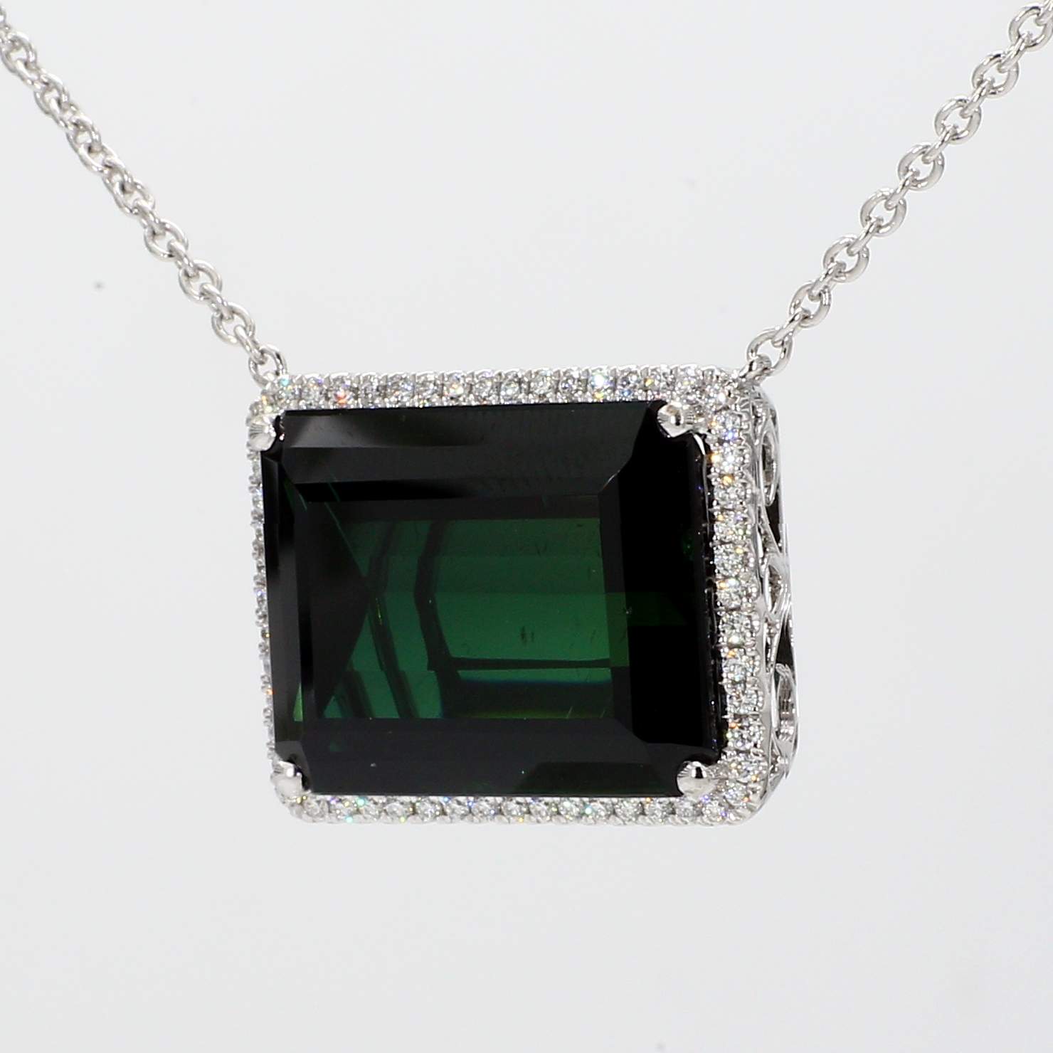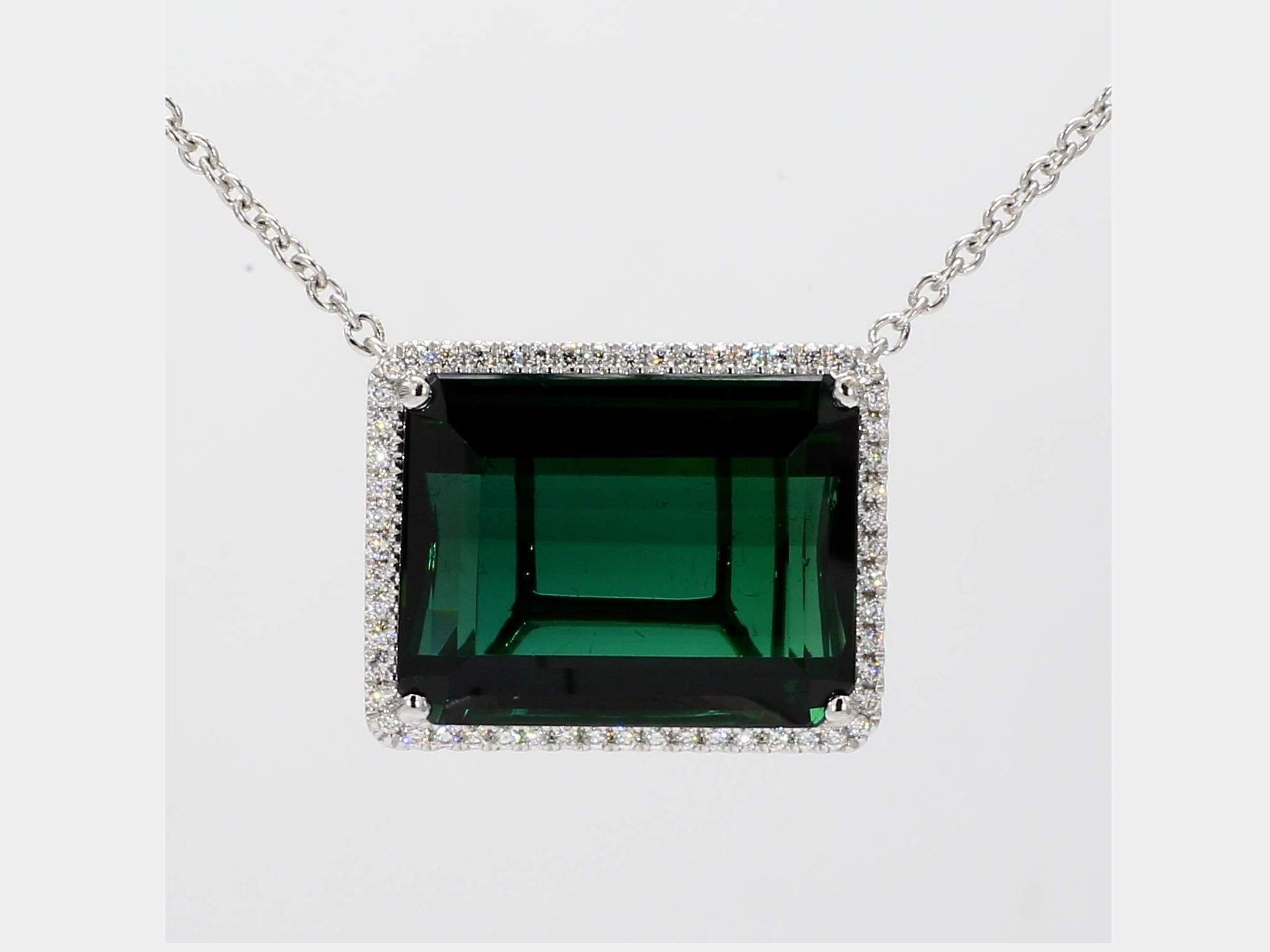 EMERALD CUT GREEN TOURMALINE & ROUND DIAMOND 14KW NECKLACE