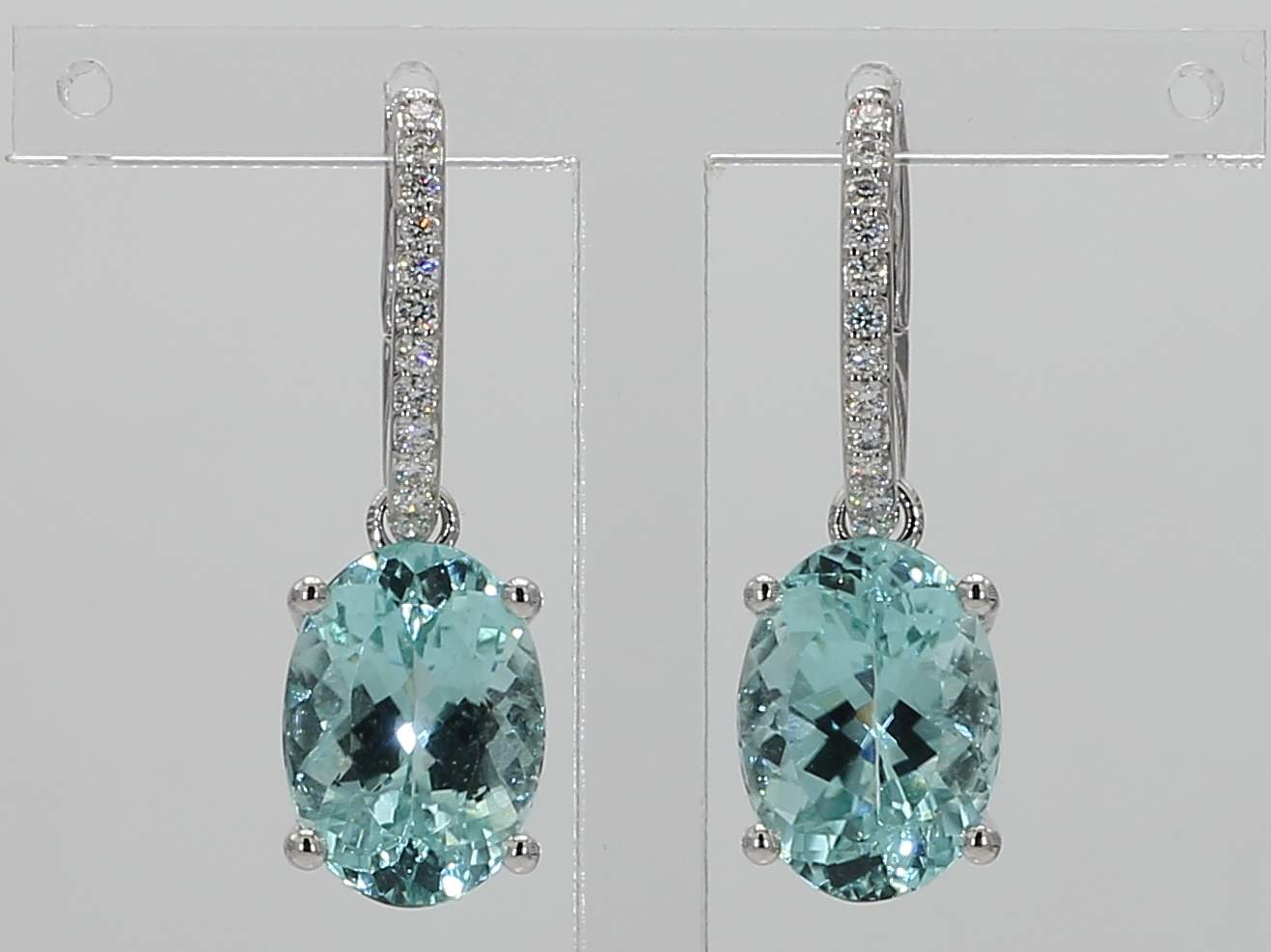 OVAL BLUE TOURMALINE & ROUND DIAMOND 14KW EARRING