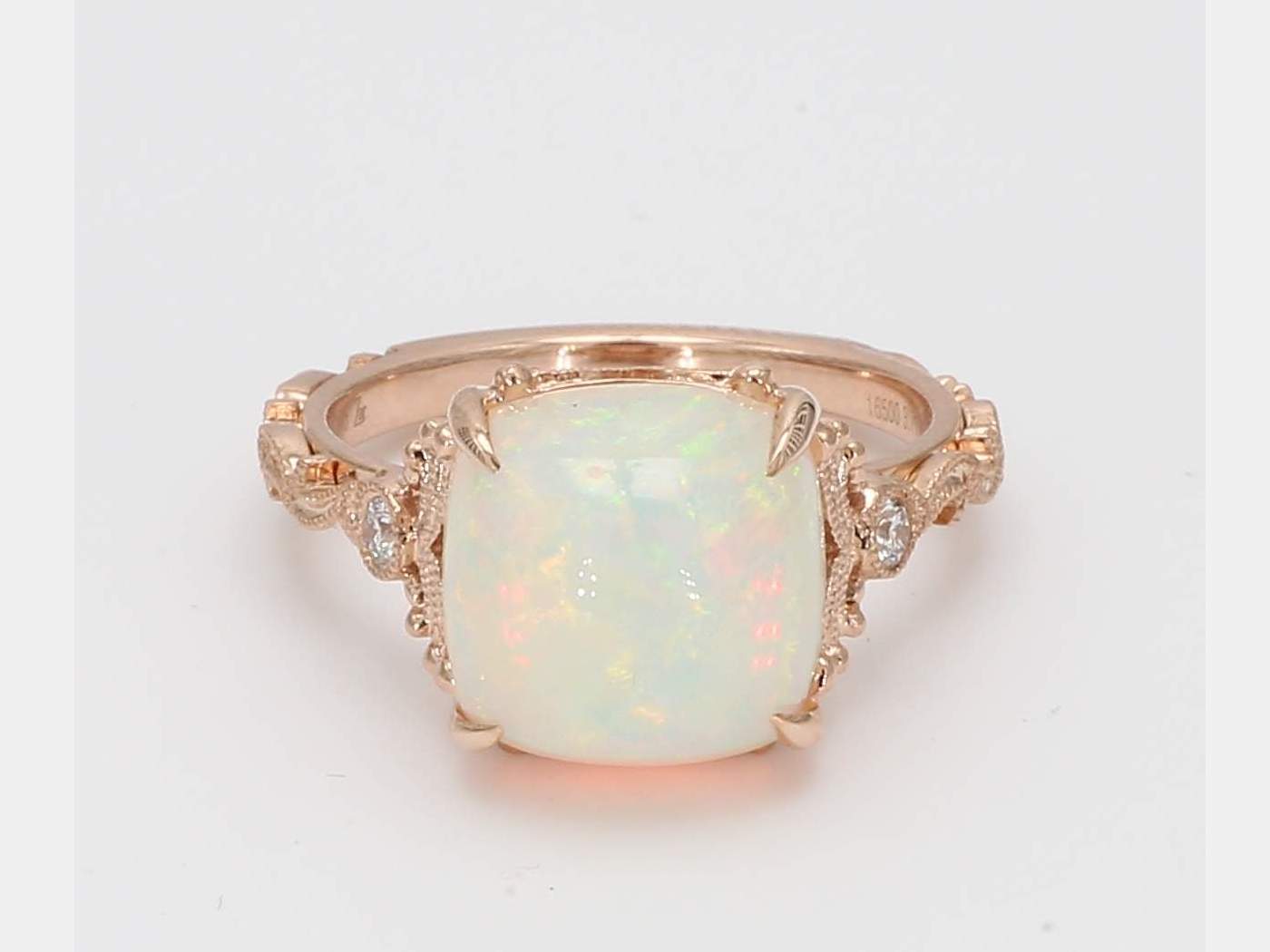 CUSHION OPAL & ROUND DIAMOND 14KR RING