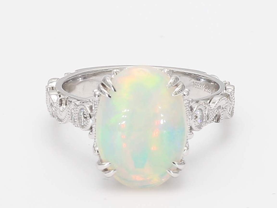 OVAL OPAL & ROUND DIAMOND 14KW RING