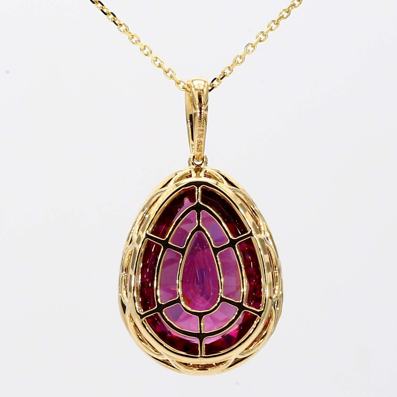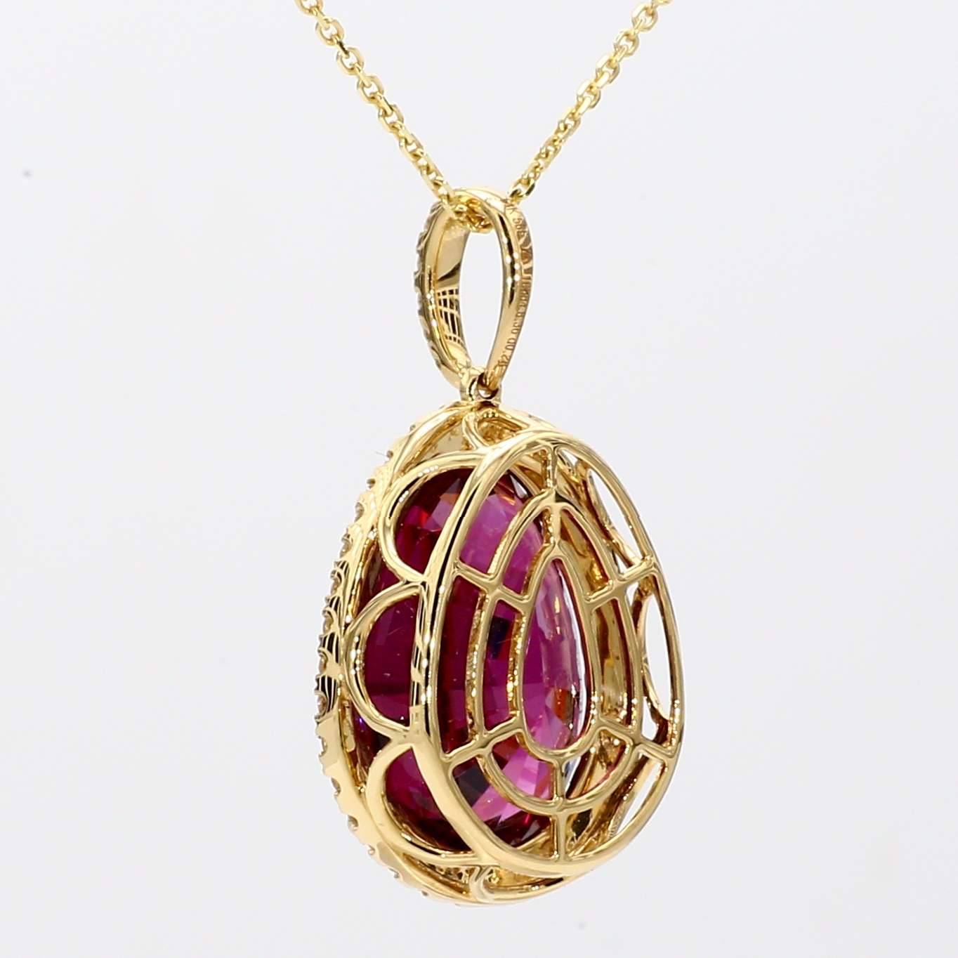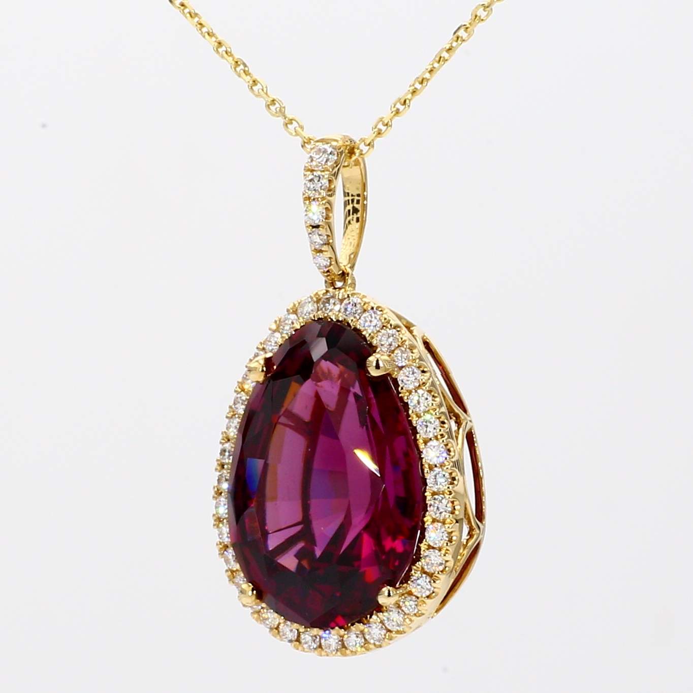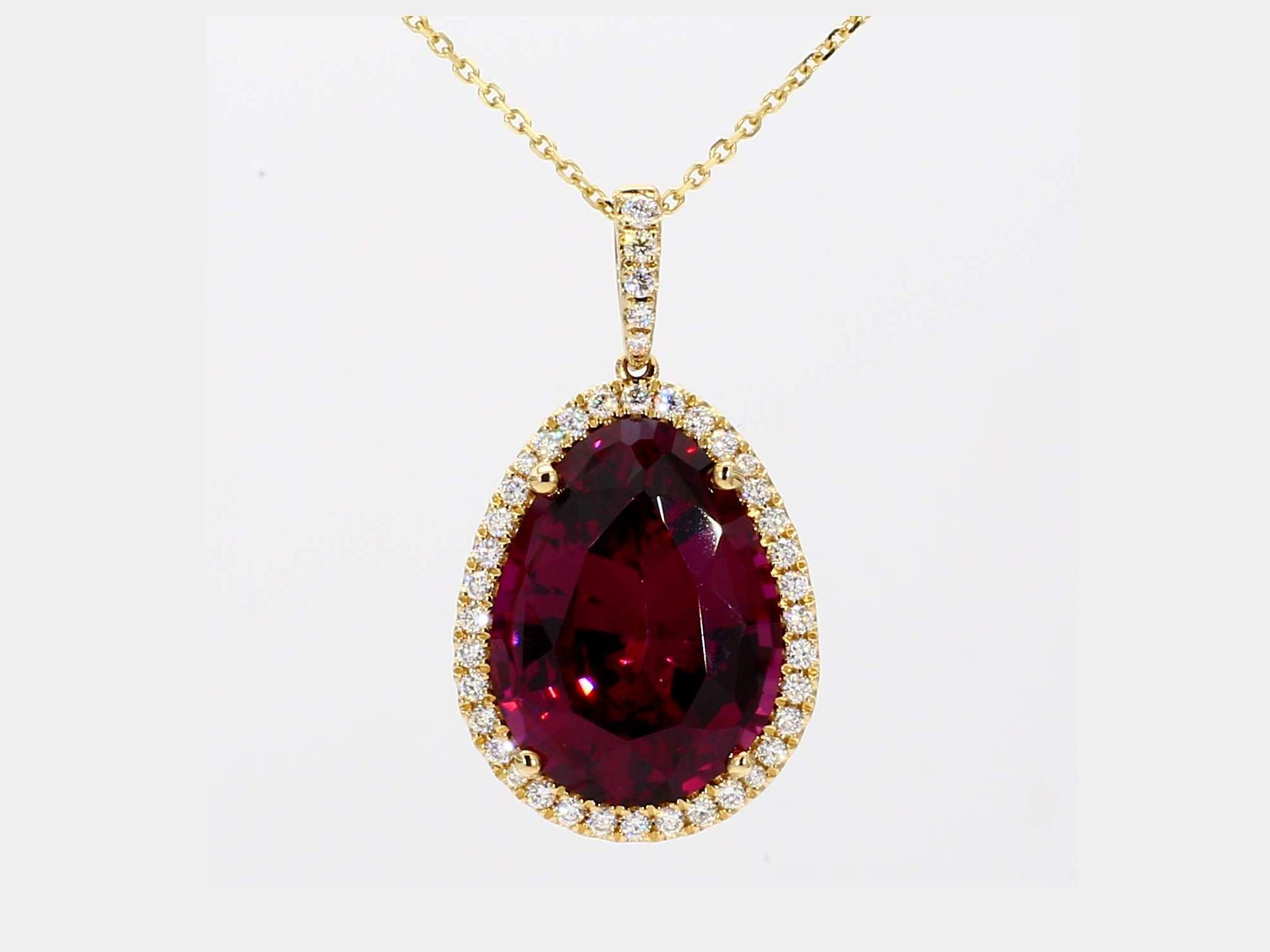 PEAR SHAPE RHODOLITE GARNET & ROUND DIAMOND 14KY PENDANT